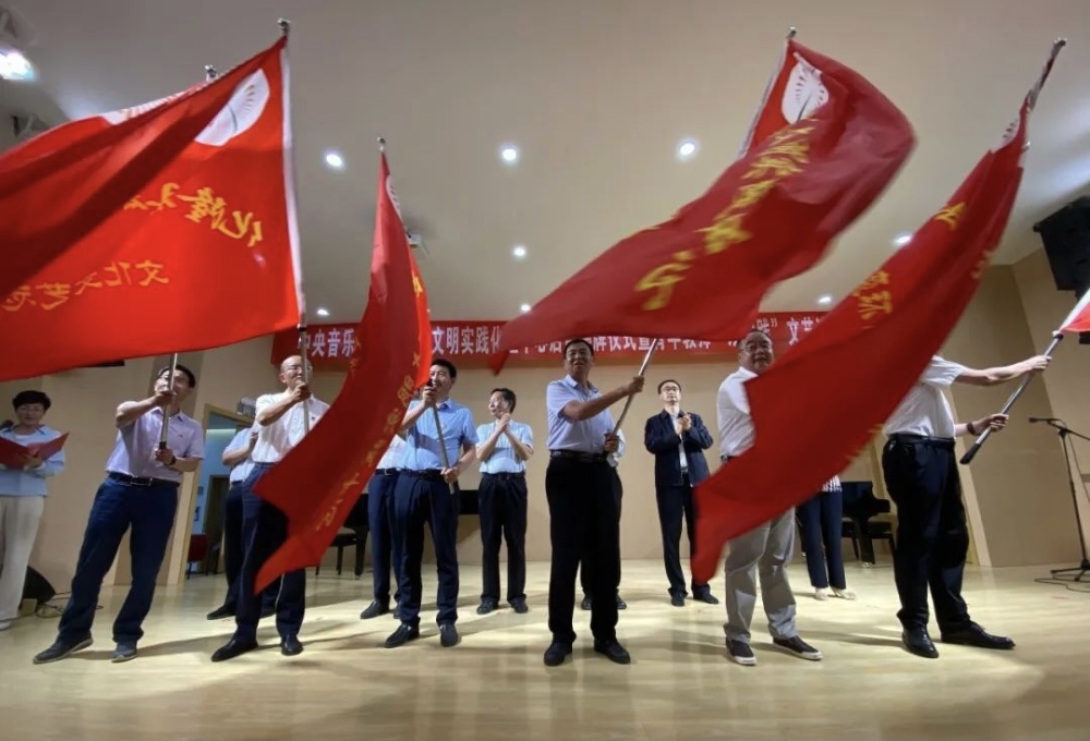 活动现场,各参会领导为开云kaiyun官方网站新时代文明实践化隆中心揭牌,并为理论政策宣讲志愿服务队、文化文艺志愿服务队、助学支教志愿服务队等11支志愿服务队进行了授旗仪式。