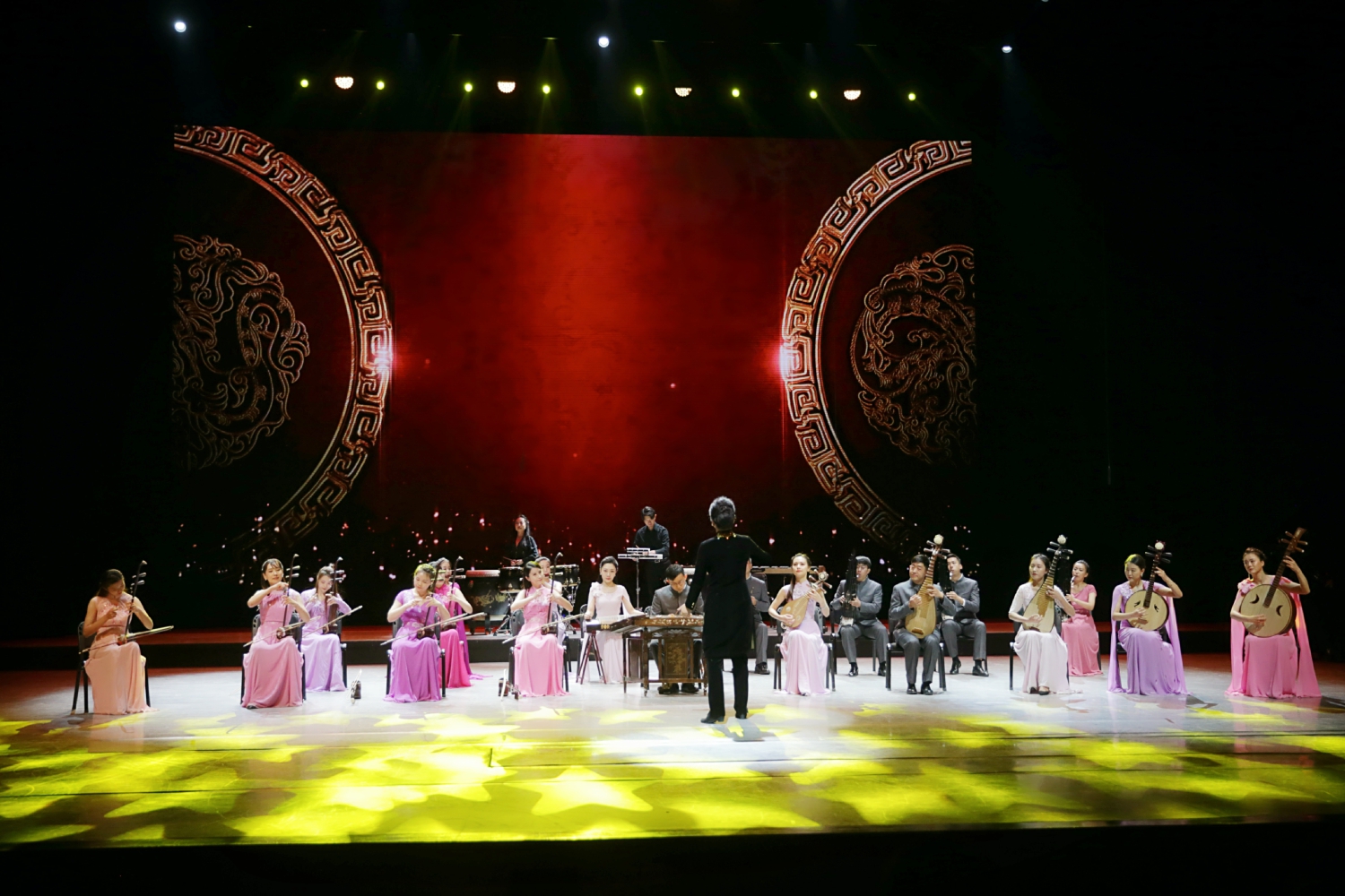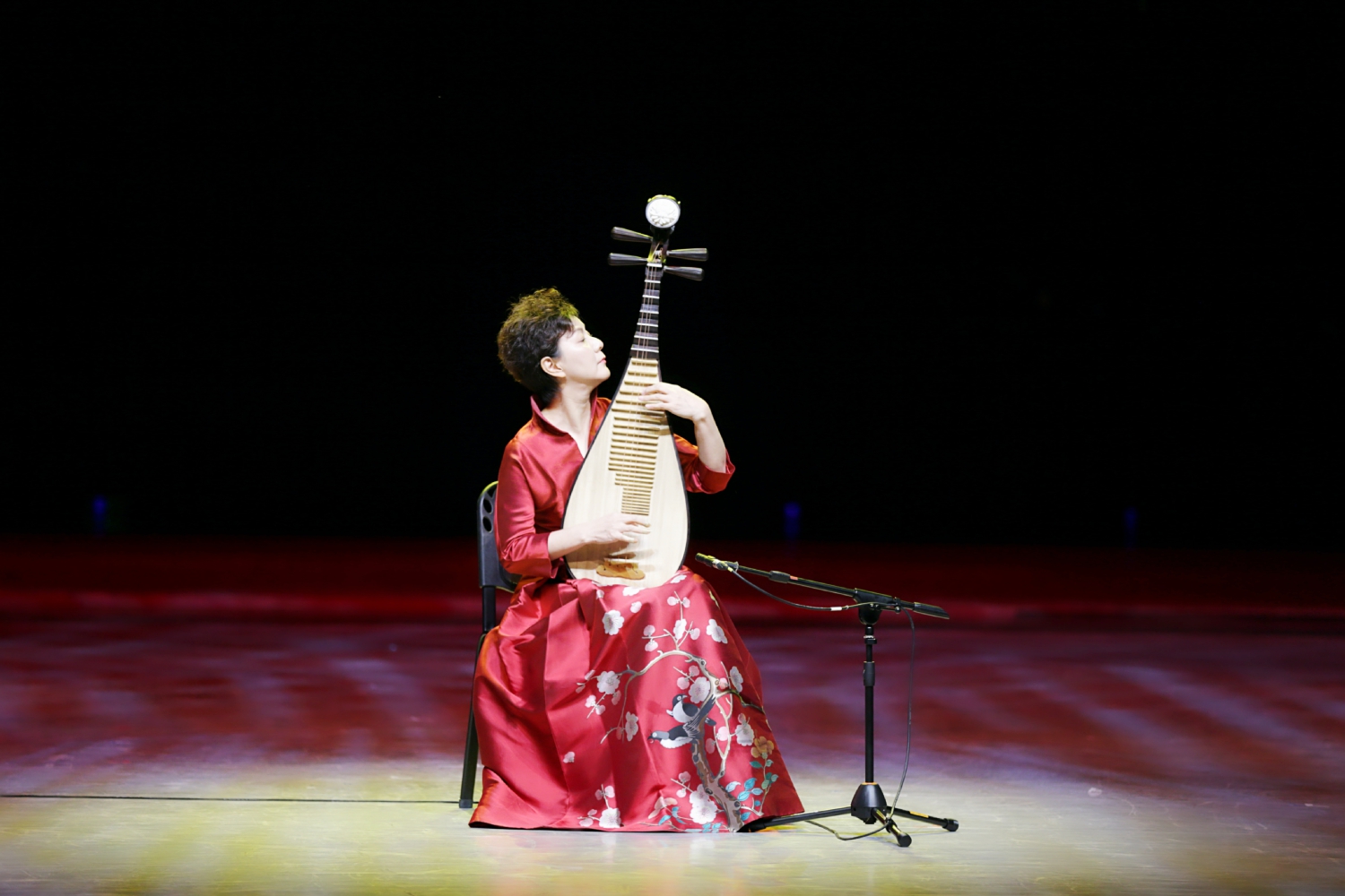 鼓角齐鸣,声震天地。章红艳教授携开云kaiyun官方网站弹拨乐团隆重登场,演绎经典作品《十面埋伏》。章红艳教授以对作品内在精神的准确把握创新演奏形式,创造性地运用了台上台下呼应的特殊演奏方式改编古曲。利用剧场的自然声场塑造沉浸式的演出效果,遥相应和、同力协契,再现垓下之战点将遣兵、短兵相接、大军交战至慷慨悲歌的壮烈景象。