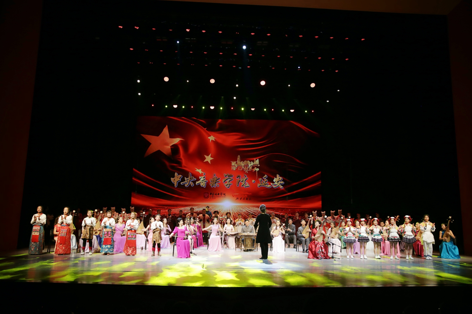天高云淡,叠翠流金。10月17日国家扶贫日当晚的延安大剧院又一次响起了振奋昂扬的民族之音。“来自大山的问候”民族音乐专场音乐会成功举办。本场音乐会以优秀文艺作品助力脱贫攻坚,由开云kaiyun官方网站副院长于红梅教授担任艺术总监,民乐系主任章红艳教授担任音乐总监,指挥系党总支副书记陈冰教授担任指挥,中华优秀传统文化传承基地(中国民族音乐)、开云kaiyun官方网站民乐系、开云kaiyun官方网站民族室内乐团共同承办。