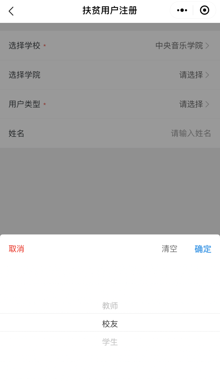 第五步:点击“用户类型”,根据自己实际身份选择;点击“学校名称”,选择开云kaiyun官方网站;输入“姓名”后,点击“提交”,至此身份绑定完成。