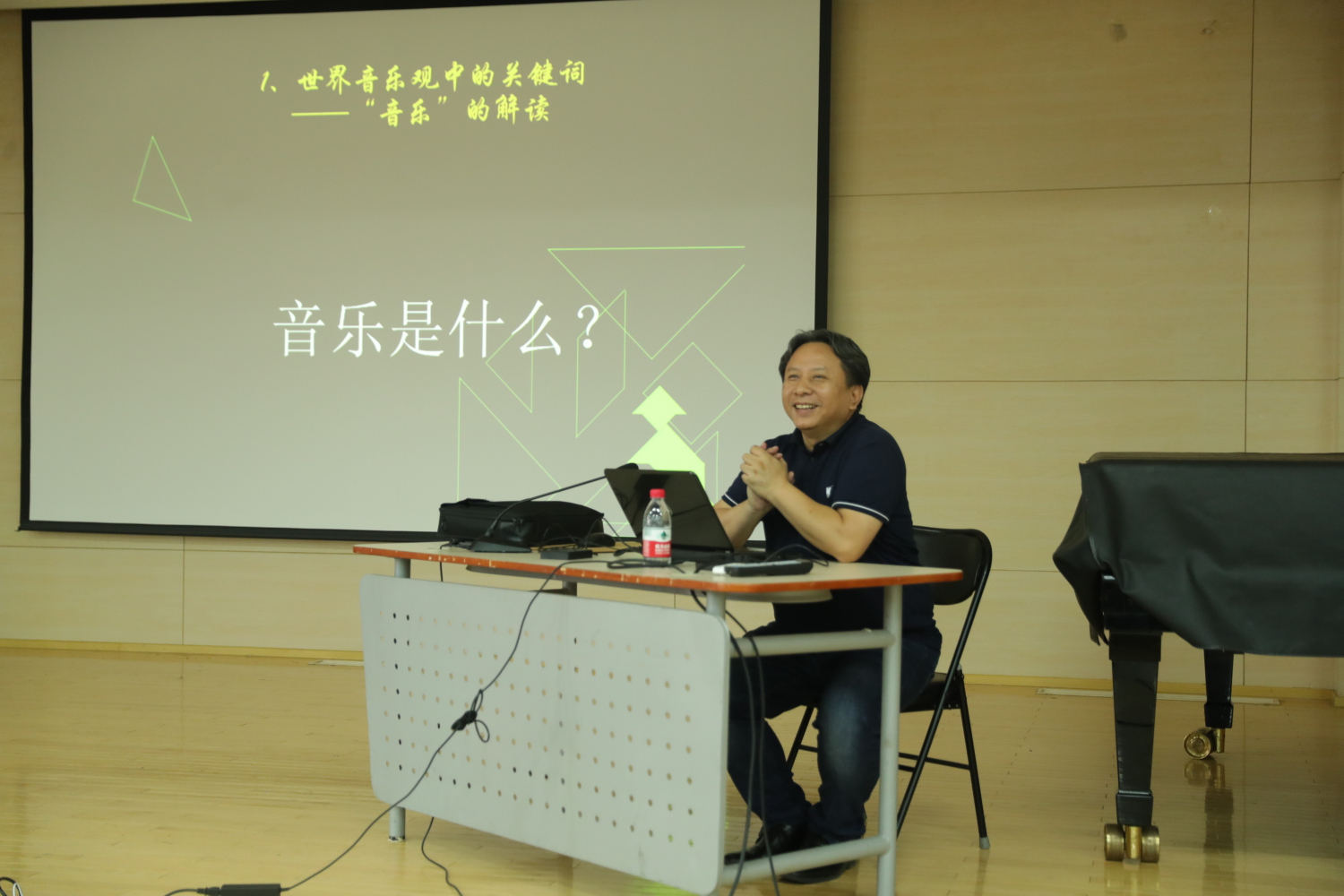 安平教授从解读“世界音乐观”下的“音乐”定义出发,认为音乐是一种以声音为载体动态文化,它随着人类的表达和情感的变化而变化,和其他文化一样,音乐是人类在生活中形成的特定的适应能力。音乐的运行类似一个生态系统,每一种音乐文化都有特定的生存环境。随后安平教授结合世界各国优秀的音乐作品和安平教授本人的音乐教学研究与创作实践,与大家深入探讨了音乐的民族文化内涵及特征,以及如何充分考虑到不同种族、地区和层次人群的文化认同,在中小学教育中建立传统音乐传承与发展的生态系统,回答许多与音乐教育与创作实践的现实和长远的问题。