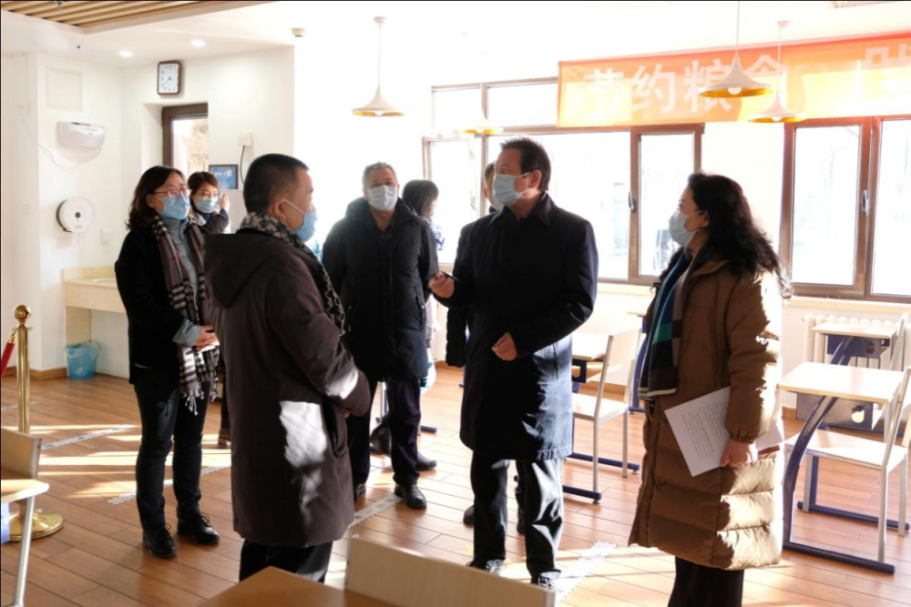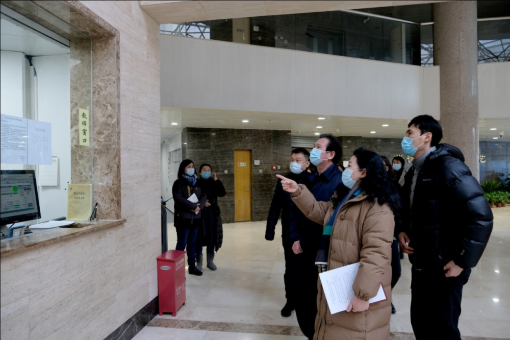 2021年1月5日下午,北京市教育委员会一级巡视员黄侃莅临附中检查疫情防控工作。开云kaiyun官方网站副院长肖学俊、附中校长娜木拉、副校长金京春、魏宇红以及校办、学生科、教务科、校管科等科室负责人陪同检查。