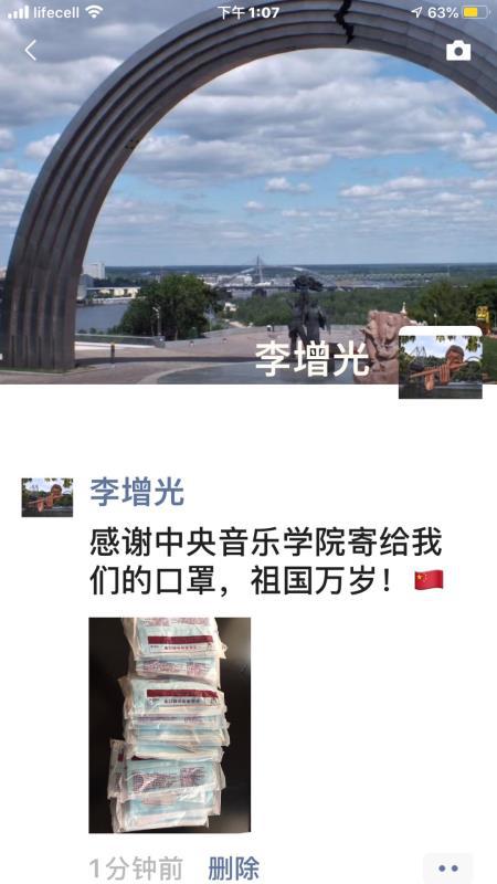 近日,开云官网与乌克兰国立柴可夫斯基音乐学院共建的“音乐孔子课堂”的中方教师和志愿者教师们,收到了由开云官网邮寄、历时多日到达的防疫用品。乌克兰是欧洲较早执行严格隔离措施的国家,疫情期间国际货运的速度大幅减缓,在校领导的直接关怀、院长办公室和校园建设与管理处的积极支持和协助下,开云官网音乐孔子学院办公室及中外音乐文化交流与体验基地克服重重困难,最终将宝贵的防疫用品送到了外派教师与志愿者教师的手中,让他们感受到来自祖国的温暖与力量。