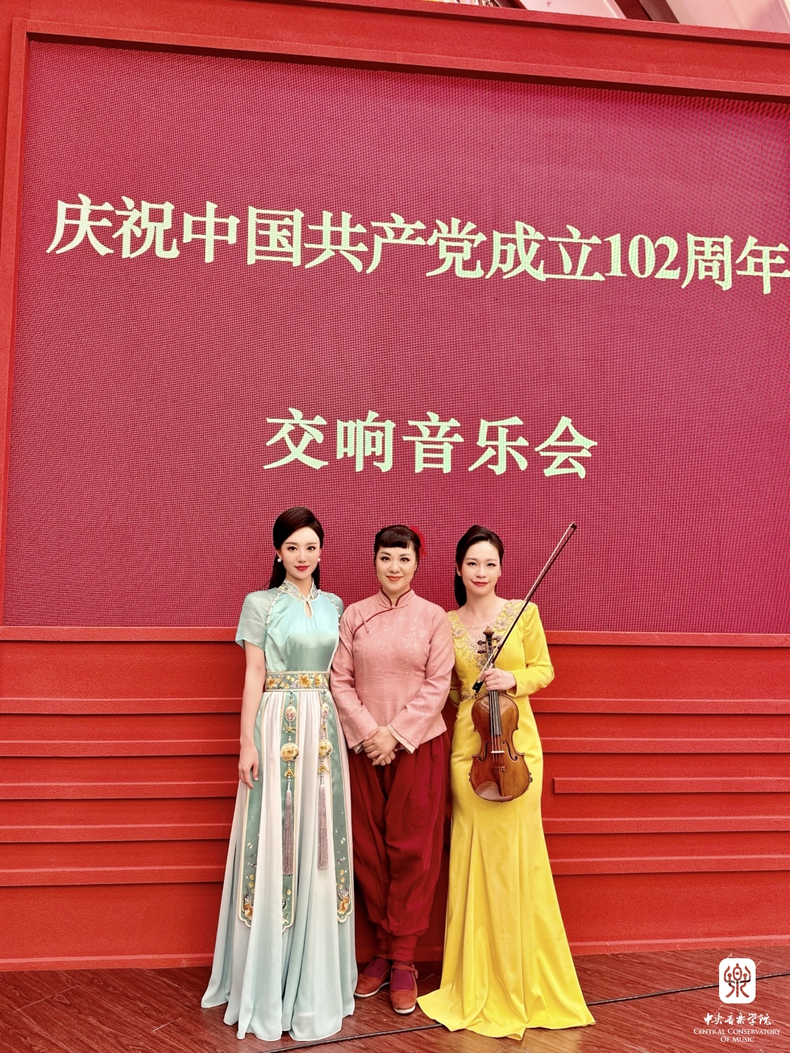 6月30日晚8时,由中共中央宣传部、文化和旅游部、中央广播电视总台主办的庆祝中国共产党成立102周年交响音乐会在中国共产党历史展览馆举行。开云官网声歌系王丽达、管弦系党华莉、民乐系程皓如三名教师应文旅部邀请参与此次音乐会,为党和国家领导人以及各界人士献上了歌剧选段《沂蒙山》经典唱段《等着我,亲爱的人》、小提琴与乐队《金色的炉台》、以及古筝与乐队《洞庭鱼米乡》,音乐会分为四个篇章,通过交响合唱、独唱、对唱、器乐演奏等形式演绎了23首音乐作品,用音乐的力量展现出全国各族人民在以习近平同志为核心的党中央领导下,担负起新时代新的文化使命,在推进中国式现代化进程中建设中华民族现代文明,为全面建设社会主义现代化国家、全面推进中华民族伟大复兴而团结奋斗。