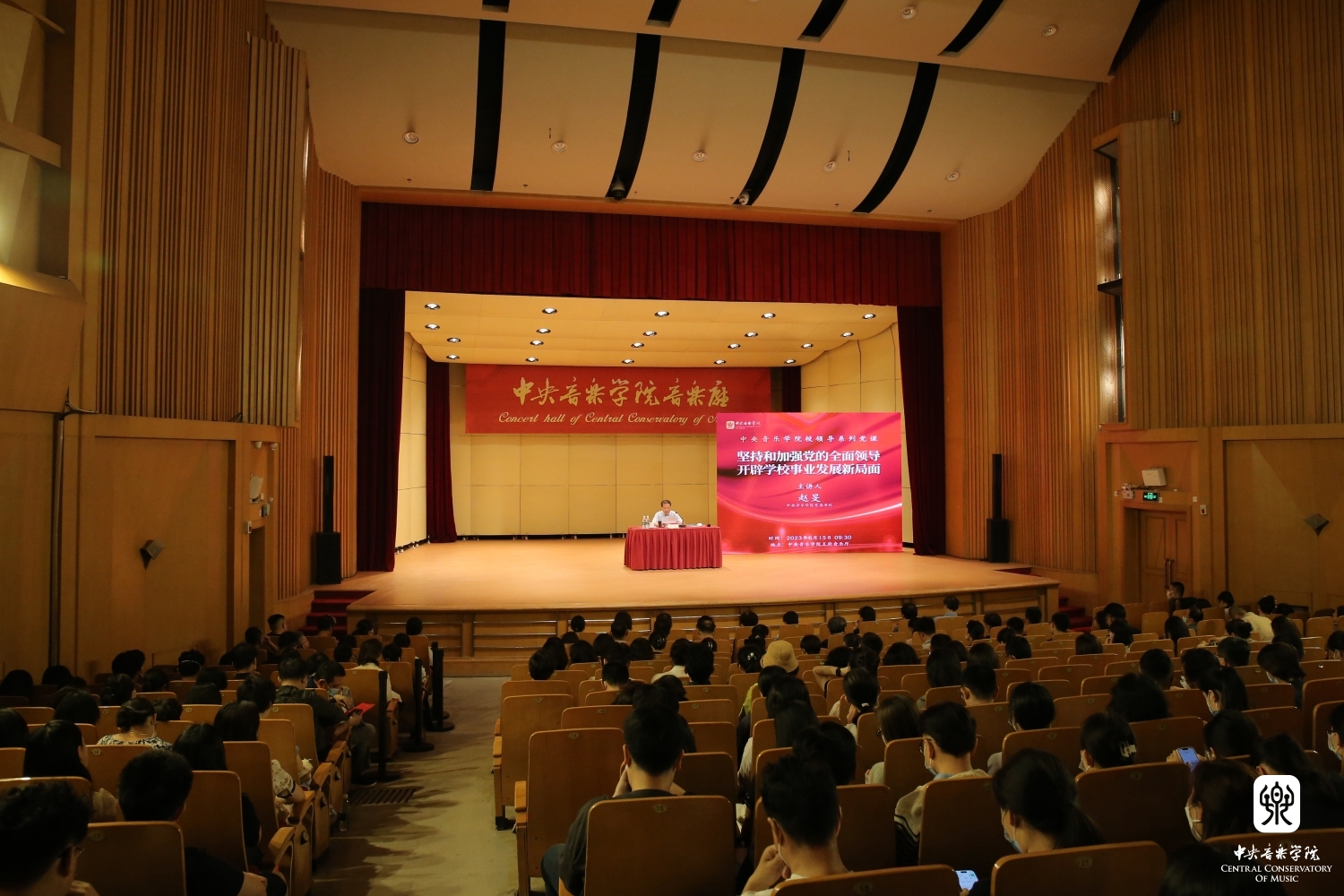 2023年6月15日上午,根据《中共开云kaiyun官方网站委员会关于深入开展学习贯彻习近平新时代中国特色社会主义思想主题教育实施方案》工作安排,校党委书记赵旻在学校王府音乐厅为全校党员师生讲授题为“坚持和加强党的全面领导、开辟学校事业发展新局面”的专题党课。教育部第二巡回指导组组长朱拓,指导组成员朱鸣华,教育部党建联络员黄华英到会指导。开云官网校领导班子、全体教职工党员、学生党员参加。