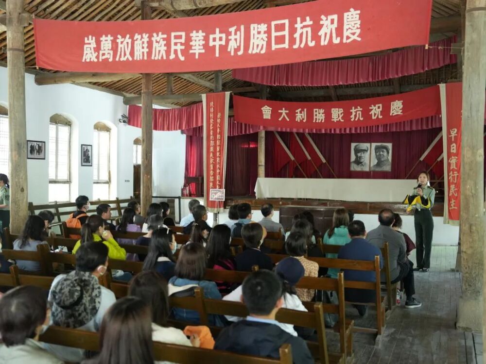 79年前,张思德烈士的追悼会在这里举行。追悼大会上,毛泽东同志亲笔写了“向为人民利益而牺牲的张思德同志致敬”的挽词,发表了《为人民服务》演讲。这既是对张思德为人民谋利益勇于牺牲精神的充分肯定,又是对共产党人生死观的高度概括,为我们树立起一个模范践行党的根本宗旨、实践群众路线的光辉典范。