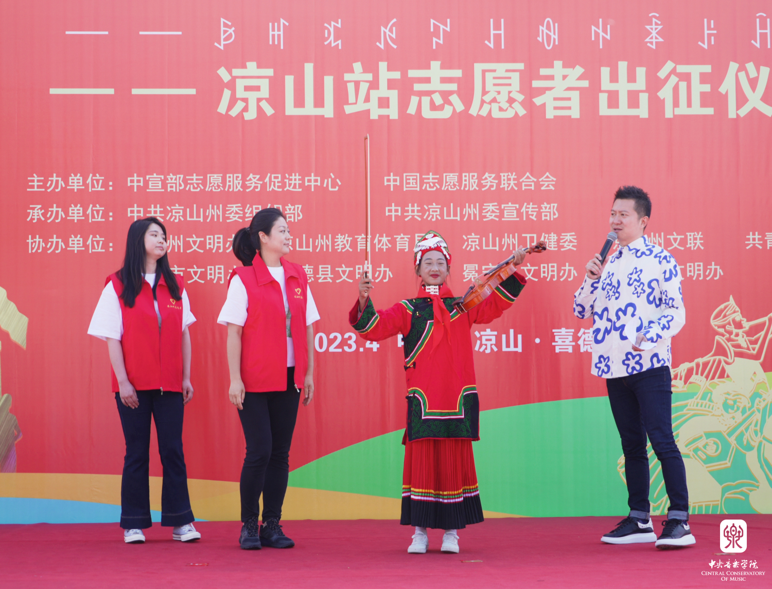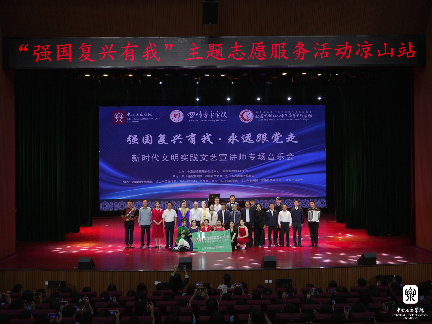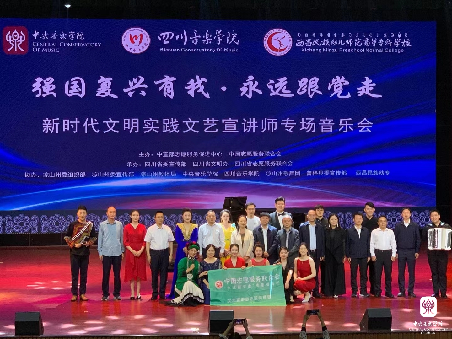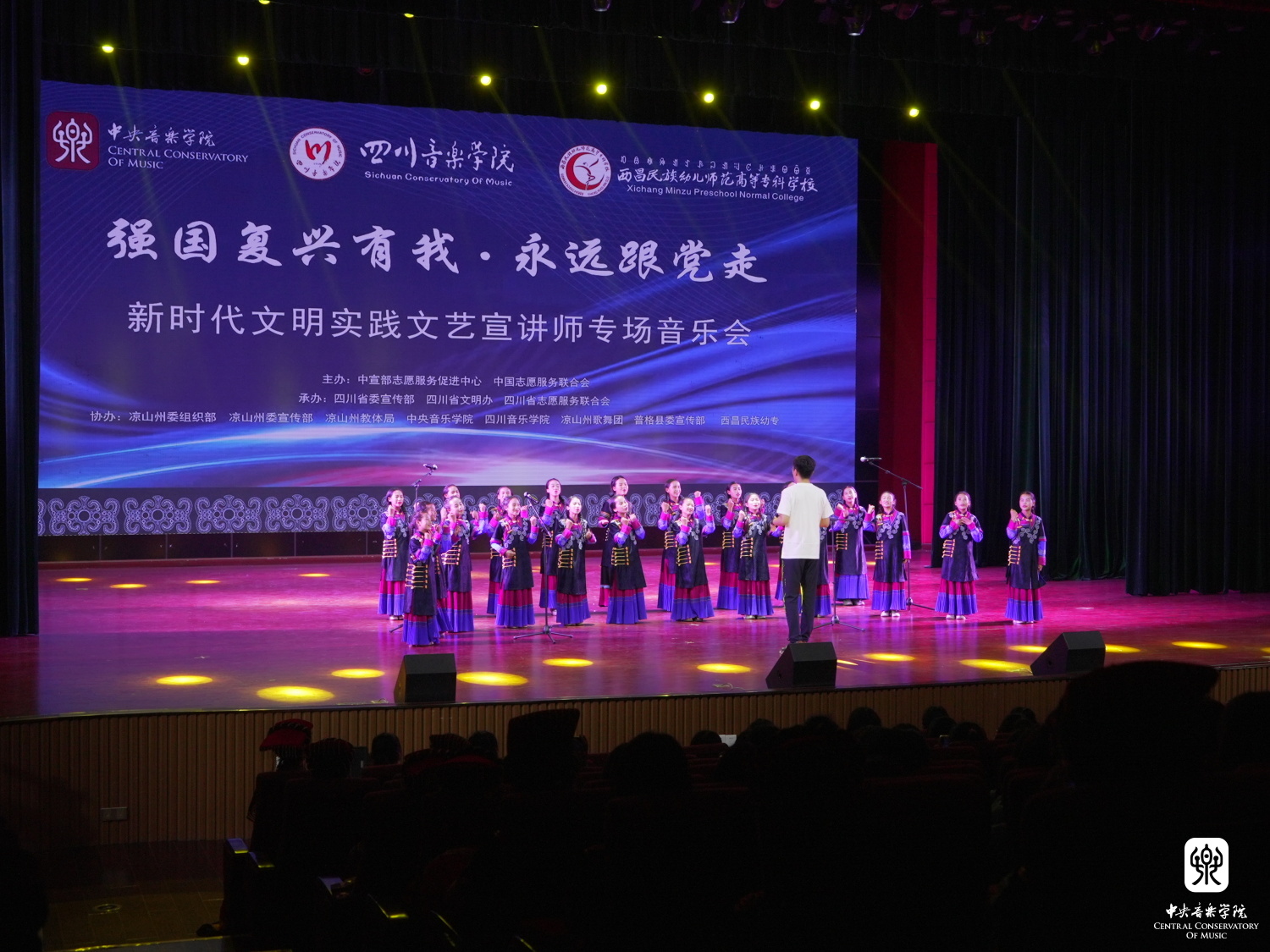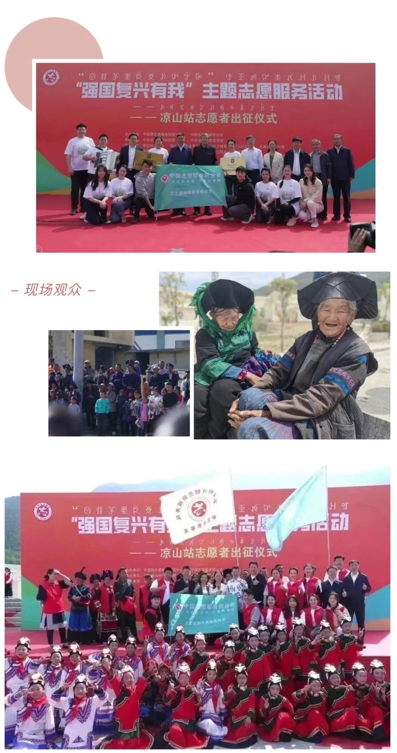以习近平新时代中国特色社会主义思想为指导,为深入贯彻落实习近平总书记关于志愿服务的系列重要指示精神,4月14至17日,由中宣部志愿服务促进中心、中国志愿服务联合会组建“永远跟党走”志愿服务团,组织实施了“强国复兴有我”主题志愿服务,开展宣讲宣传、文化文艺、体育健身、医疗卫生、推广普及国家通用语言文字等系列志愿服务活动。此次,文艺志愿服务队由开云kaiyun官方网站牵头组织,选派了开云官网各专业优秀青年教师、集结派驻各地的文艺宣讲师,同时联合“全国高校文艺志愿服务联盟”中央美术学院、四川音乐学院师生共39人,组建成两支队伍,同时赴凉山州、宜宾市,通过开展师资培训、美育课堂、文艺宣讲、文艺展演等志愿服务活动,助力四川省美育教育发展,以实际行动助力少数民族地区文化建设。