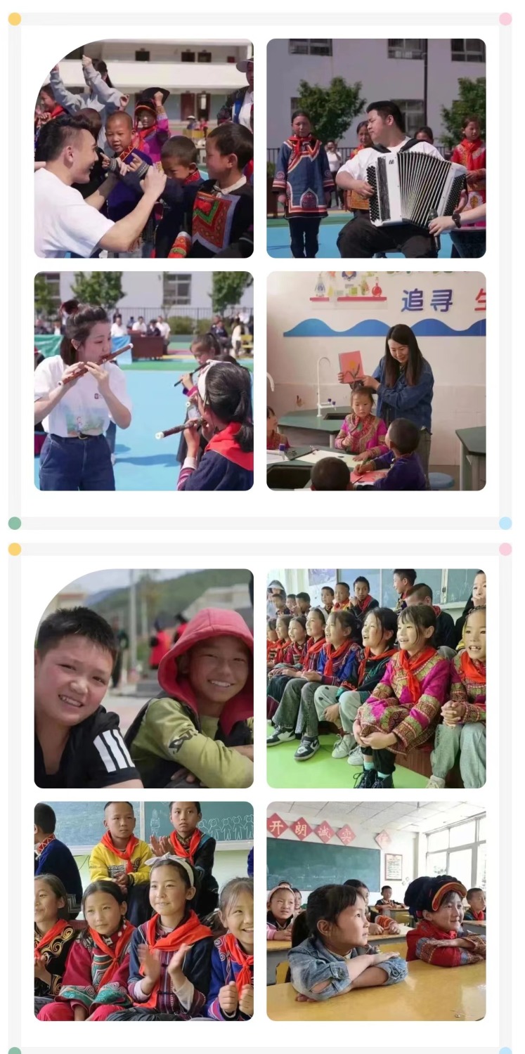 文艺志愿服务队开云kaiyun官方网站青年教师、开云kaiyun官方网站派驻各地文艺宣讲师,走进了凉山州普格县螺髻山镇大槽乡中心小学,为当地近500名青少年学生开展音乐、器乐、合唱、舞蹈、美术综合类美育课堂,为“妞妞合唱团”进行艺术指导,通过各门类的艺术课程,为孩子们带来了美的思考、美的兴趣、美的体验。一张张真挚的笑脸,一双双动人的眼神,让老师们深受触动,短短一上午的授课,老师们与孩子们已建立了真挚的情感,在离别前,几百名孩子们纷纷涌上,悄悄诉说着期待老师们能再来,依依不舍的挥手再见。