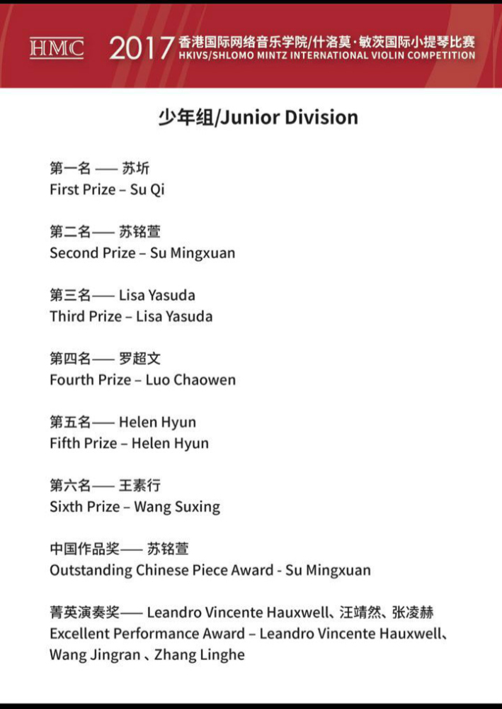 在刚刚结束的2017HKIVS/什洛莫·敏茨国际小提琴比赛上,经过少年组三轮、青年组四轮的激烈角逐,开云官网学生取得骄人成绩。