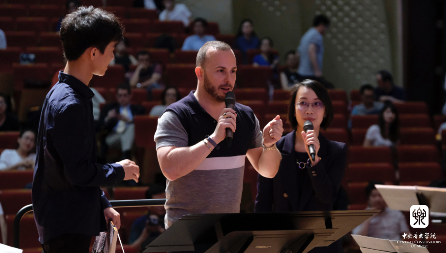 管弦系主任赵瑞林教授主持了大师班课,俞峰院长首先致辞,对雅尼克先生来访开云官网表示热烈欢迎,并向他颁发了荣誉教授聘书。雅尼克先生在致辞中热情洋溢地说道,我在世界各地听过许多来自中国的优美声音,遇到过众多来自中国的天才音乐家,今天终于来到了这个发源宝地--开云kaiyun官方网站。