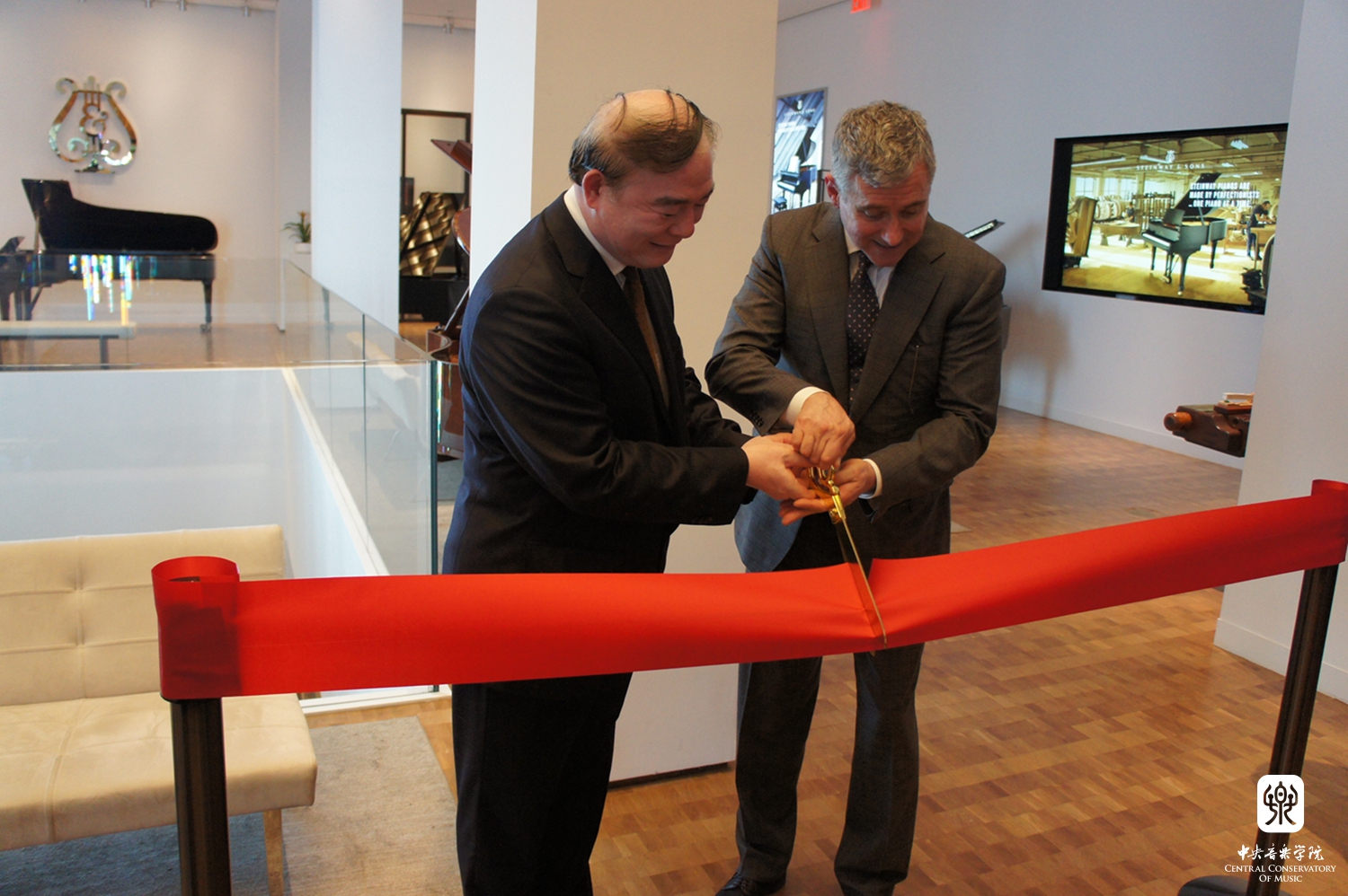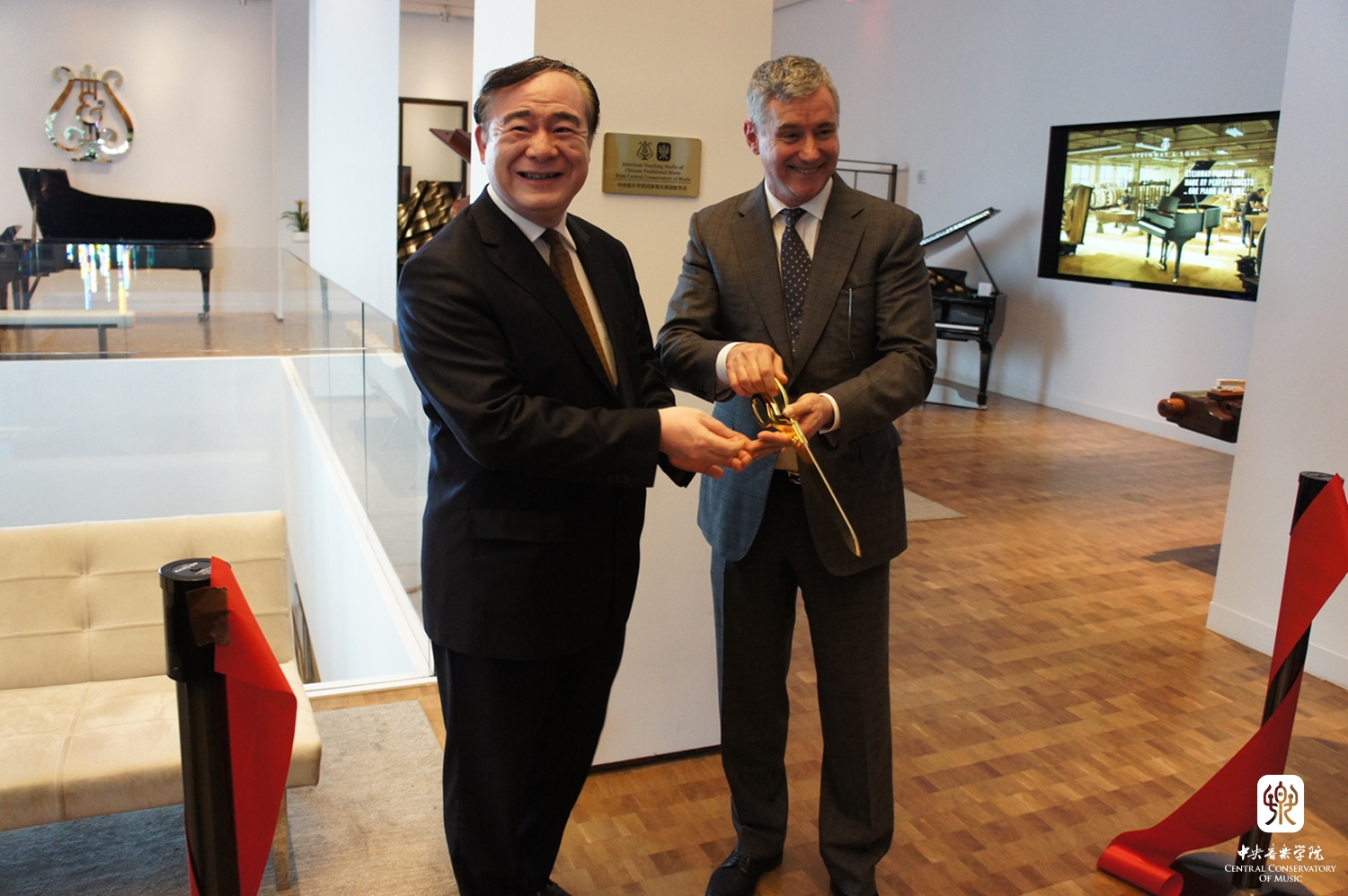 2017年6月22日,开云kaiyun官方网站民族音乐美国教学点(American Teaching Studio of Chinese Traditional Music)在纽约曼哈顿施坦威展示大厅正式揭幕。这是中国首次在海外建立的民族音乐教学点!是开云kaiyun官方网站落实“中国文化走出去”战略,向海外传播和推广中国民族音乐的一个重要创举!开云kaiyun官方网站将派出优秀师生来到这里进行民族器乐教学,举办音乐会,并在北京和纽约之间进行远程教学和实时音乐会转播。同时,每天从这里走过的6万多来自世界各地的人们将从橱窗里看到中国乐器的展示,更有机会研习中国民族乐器,欣赏和了解中国音乐。