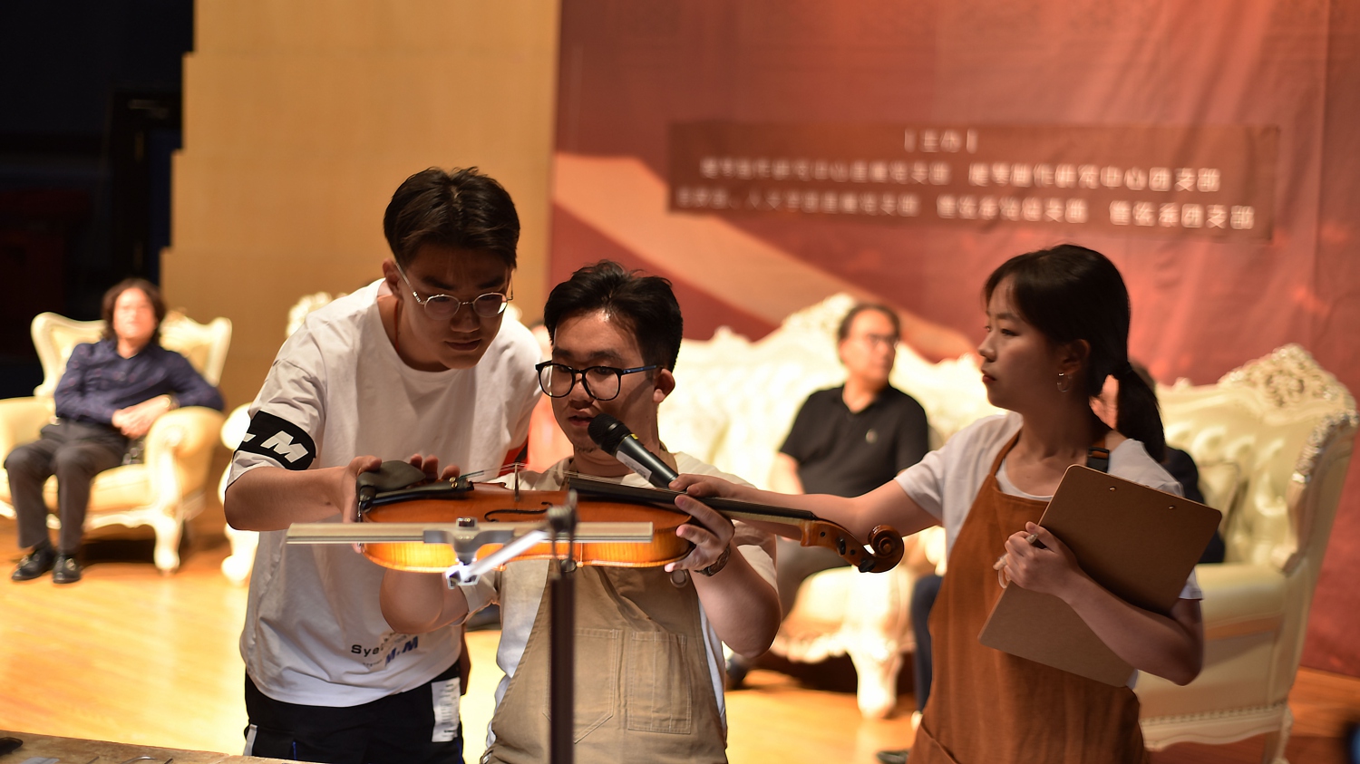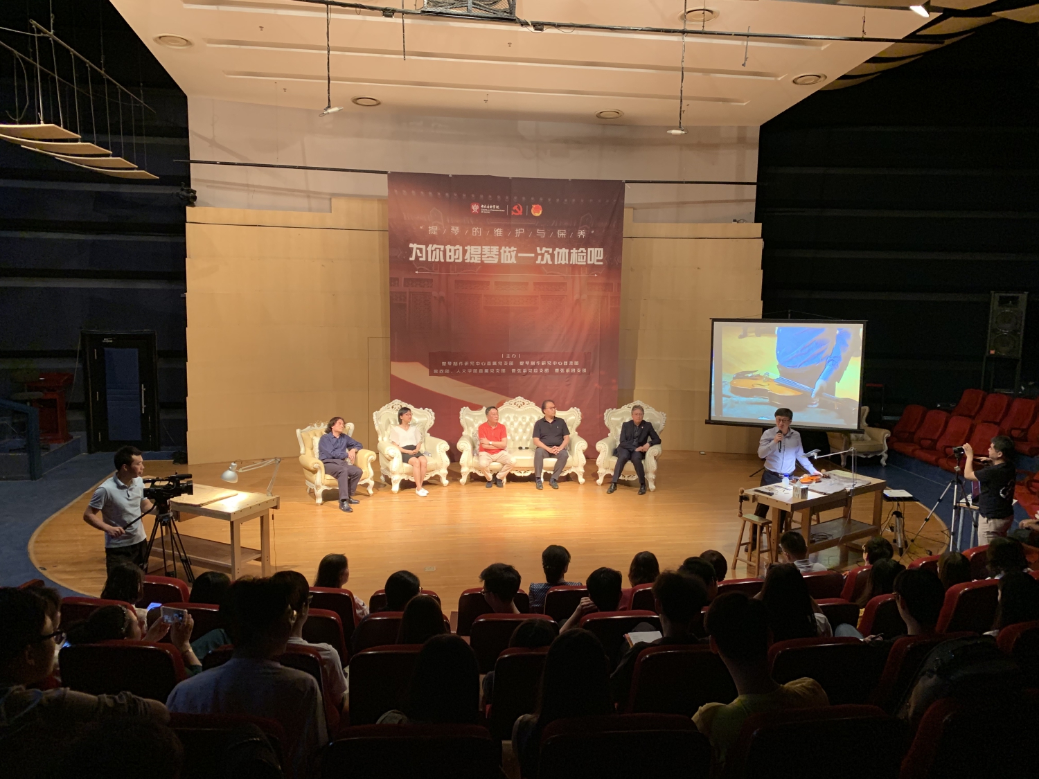 讲座最后,管弦系同学呈上自己的提琴,由中心的青年学生现场诊断。学生们的诊断与评说全面有序,精准到位,迎来了阵阵掌声,令受诊者受益匪浅。