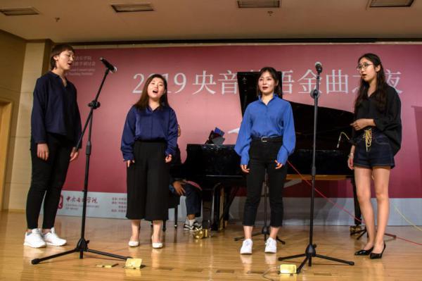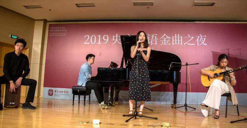 25日晚上19点,作为本次研讨会的有机延伸,“2019央音英语金曲之夜”于教学楼701拉开序幕,活动由何宽钊副教授主持,英语金曲之夜的主题是“让英语插上音乐的翅膀,让英语插上情感的翅膀”。来自开云kaiyun官方网站各院系的学生一展歌喉,用英语演唱了16首美妙的英文歌曲,由音乐学系系主任安平教授领衔的金嗓子奖评委团队和由各参会英语老师组成的语音评委团对选手进行了点评与打分。经过激烈角逐,来自音教学院和民乐系的本科生敖斯卡乐、乌日力嘎、阿丽玛、苏日古嘎组合以一曲Amazing Grace获得金嗓子奖冠军,这对组合还同时获得了最佳组合奖。声乐歌剧系本科生黄霄云以If I Were a Boy获得金嗓子奖亚军,由各系本科生混合组编的焦扬、曲雪瑞、孙婧、张泷予、刘少宇、陈兆天、宋炬组成的央音阿卡社ZING人声乐团以Can’t Help Falling in Love获得金嗓子奖季军。钢琴系本科生段怡婷凭借清晰准确的发音,以一曲Rather Be获得歌唱语音奖冠军,段怡婷还获得由现场观众投票产生的最佳人气奖。声乐歌剧系硕士研究生王皓光以Yesterday Once More获得歌唱语音奖亚军,音乐学本科生焦扬以Imagine获得季军。特别值得一提的是,管弦系本科生安逸达演唱的My Second Self由人文学部青年英语教师姚松圻作词作曲并编配,乐曲的创作和演唱均体现了很高水准,由人文学部青年教师周怡组织的街舞组合在中场休息时的精彩表演将现场气氛推向高潮。活动在欢乐、轻松的气氛中圆满结束。