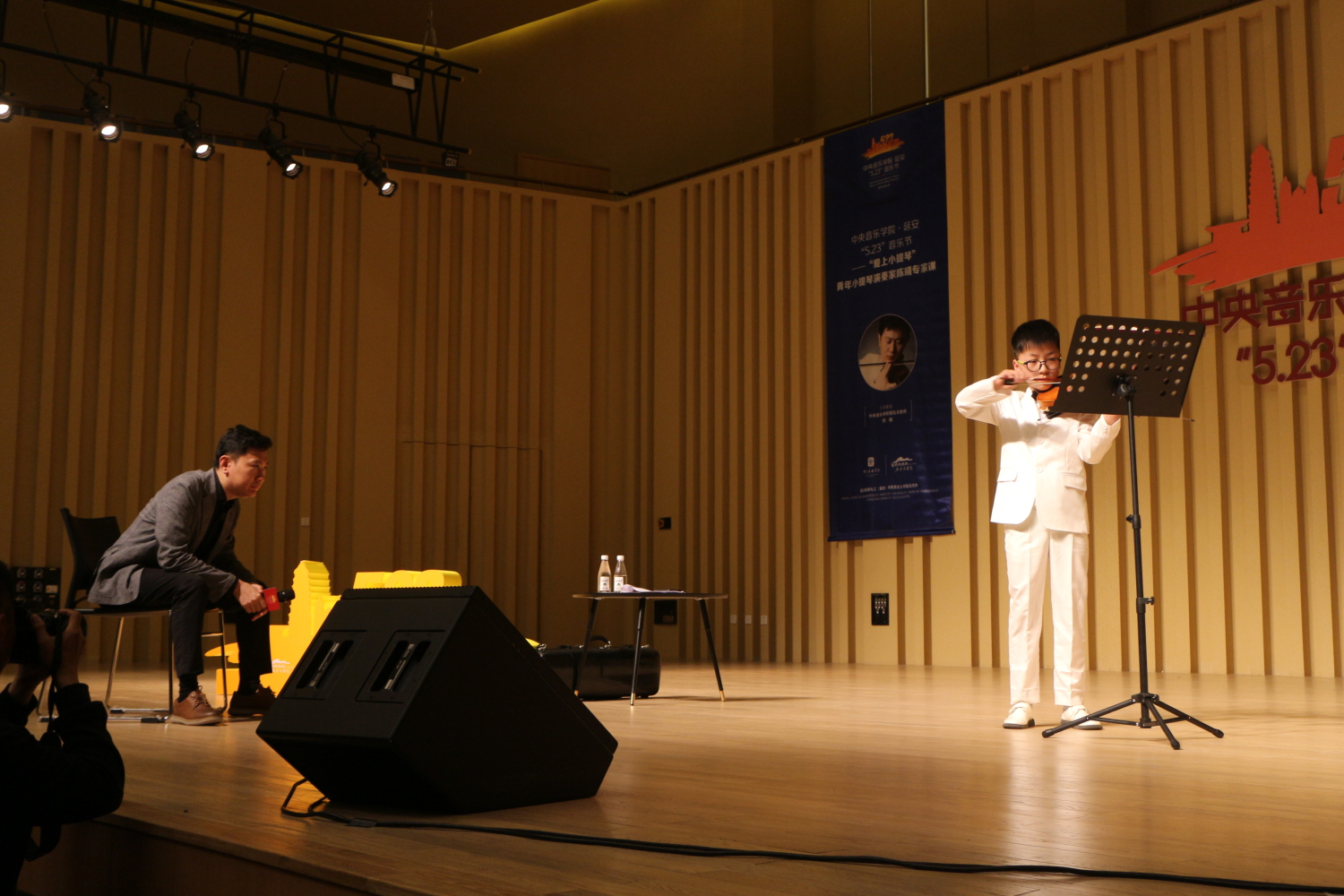 陈曦老师说,作为一名艺术工作者,来延安对他而言是一场寻根之旅,能在这座富有历史意义的城市演出让他感到无比自豪。同时,他从学习音乐的目的与乐器的选择上对延安的琴童与家长提供了建议,认为学习音乐最主要的目的是让孩子形成一种美的认知,手指条件也并非选择乐器的决定性因素,而是主要取决于孩子自己喜欢什么样的乐器。他希望能够在更大的舞台上看到来自延安的孩子。