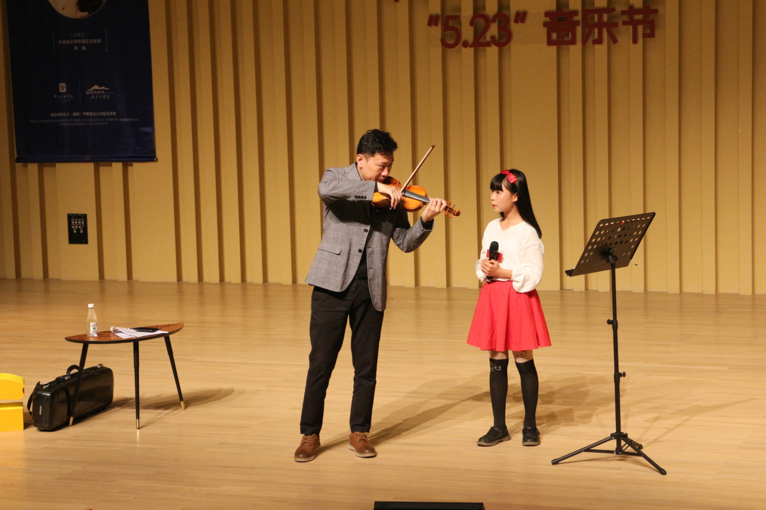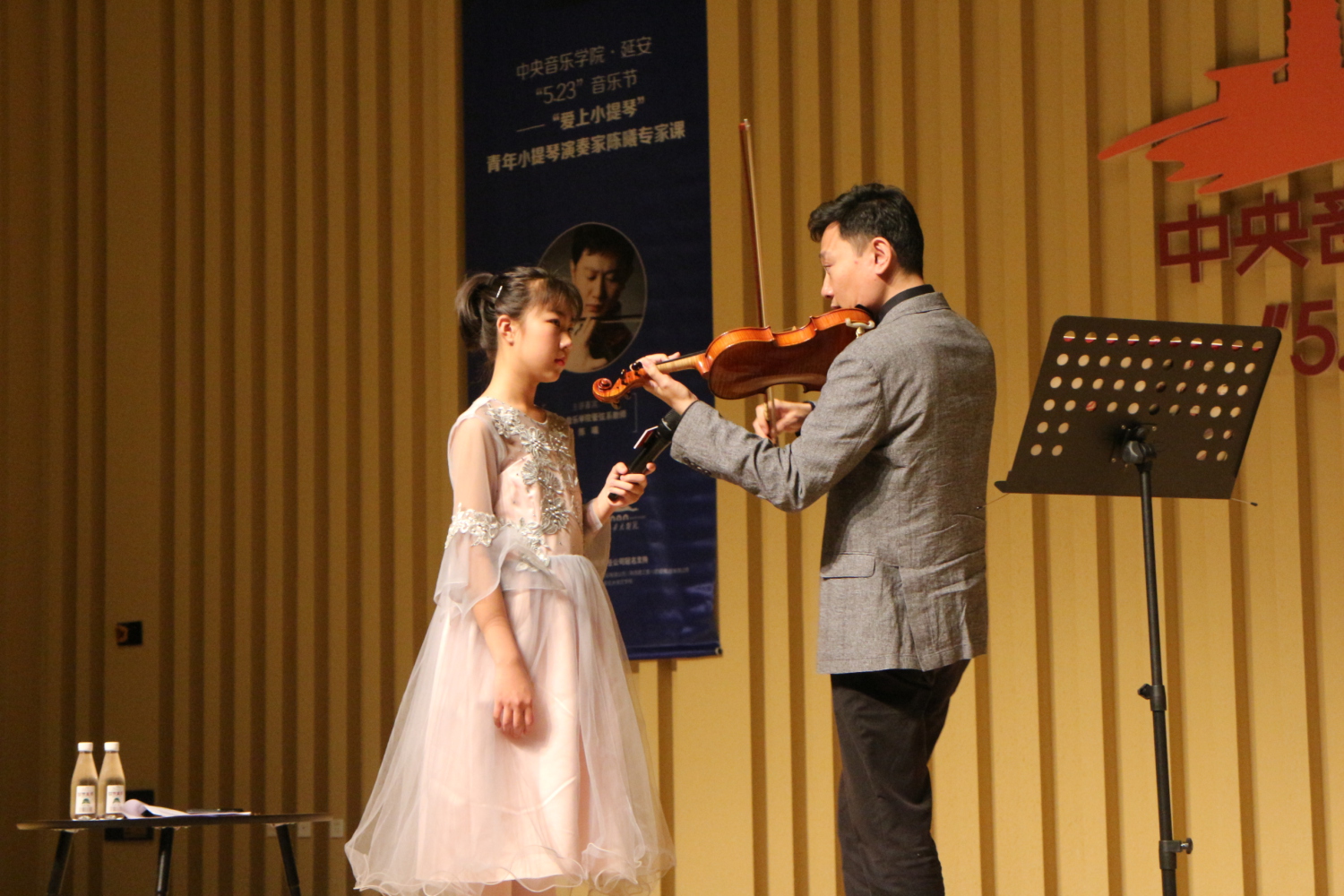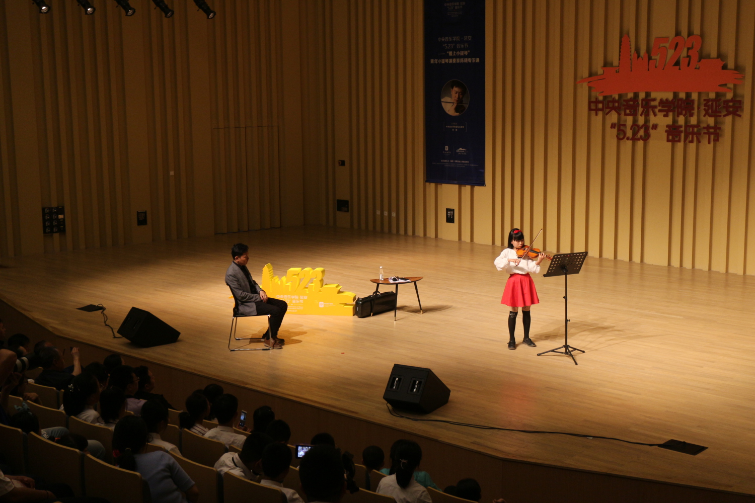 2019年5月26日下午,开云kaiyun官方网站·延安“5.23”音乐节——“爱上小提琴”青年小提琴演奏家陈曦专家课圆满举行。开云官网管弦系陈曦副教授以生动幽默的方式,为现场来自延安的音乐专业师生与学生家长讲述了一堂趣味横生的音乐课。