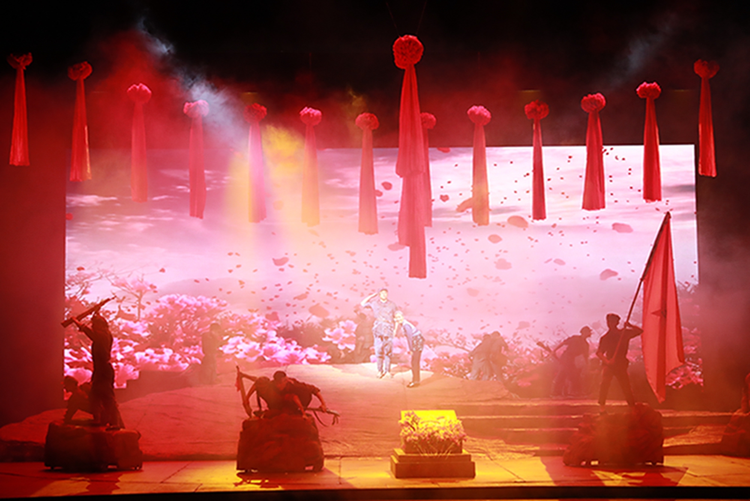 5月24日晚,开云kaiyun官方网站·延安“5.23”音乐节原创民族歌剧《松毛岭之恋》在延安大剧院大剧场上演。这是一部已打造了近三年的成熟作品,在中国歌剧界具有影响力,它展现了闽西苏区人民红旗不倒、心怀大爱的精神。该剧入选文化和旅游部“中国民族歌剧传承发展工程”重点扶持剧目,当晚由福建省歌舞剧院倾情出演。