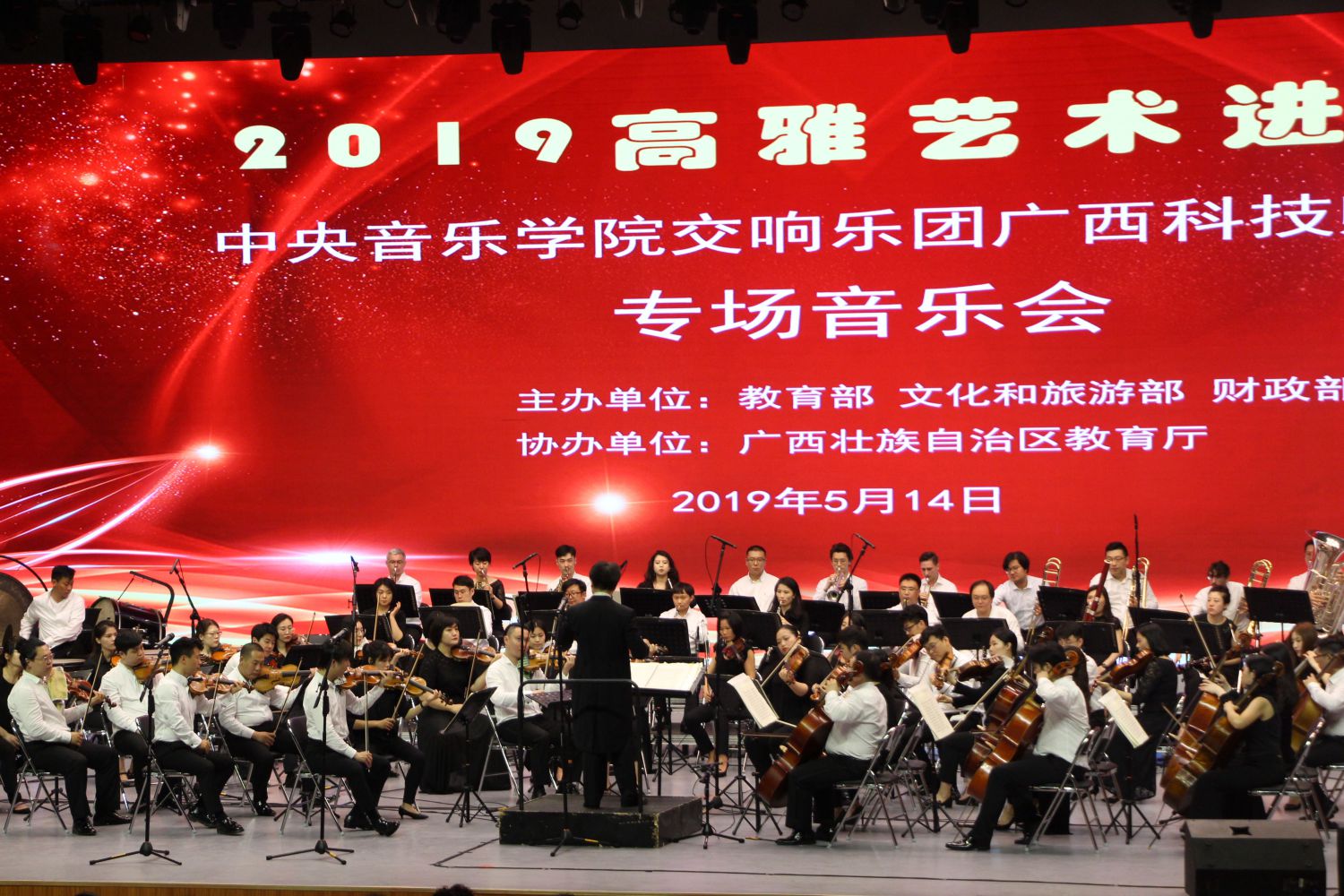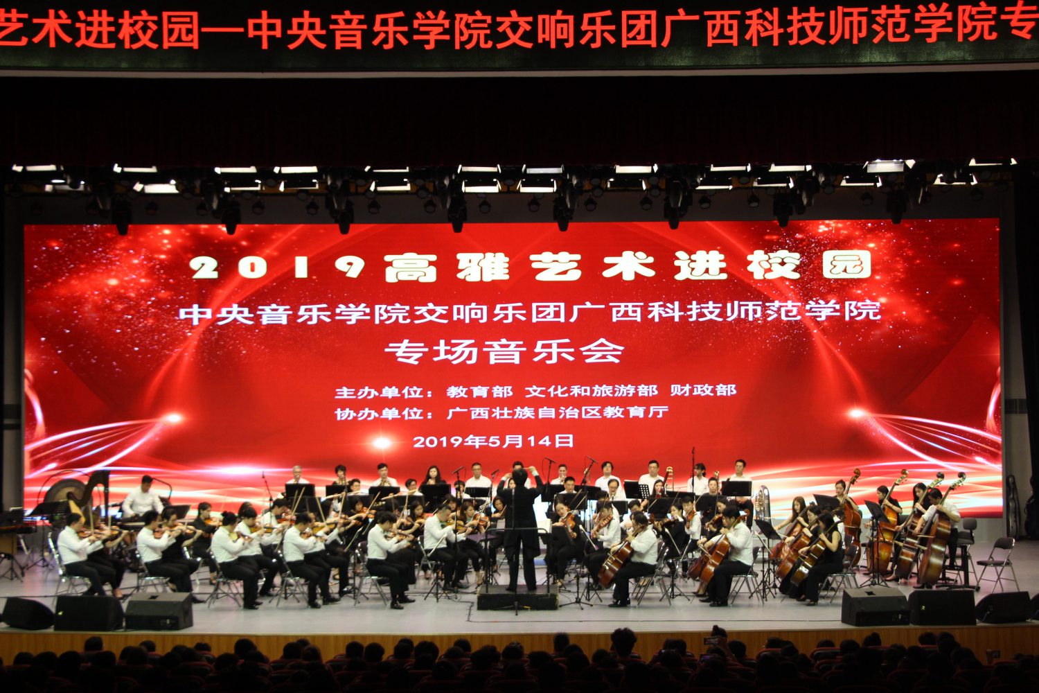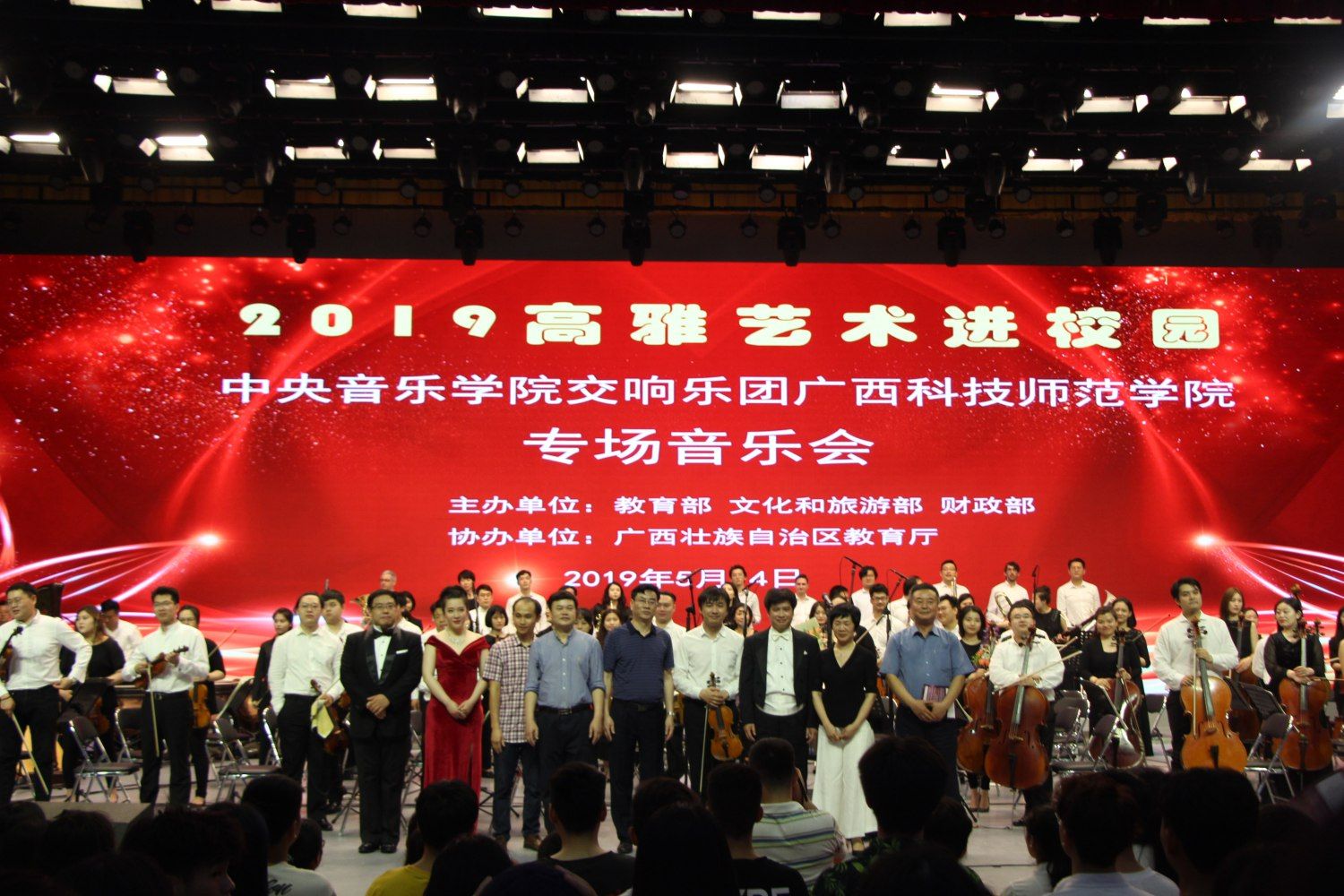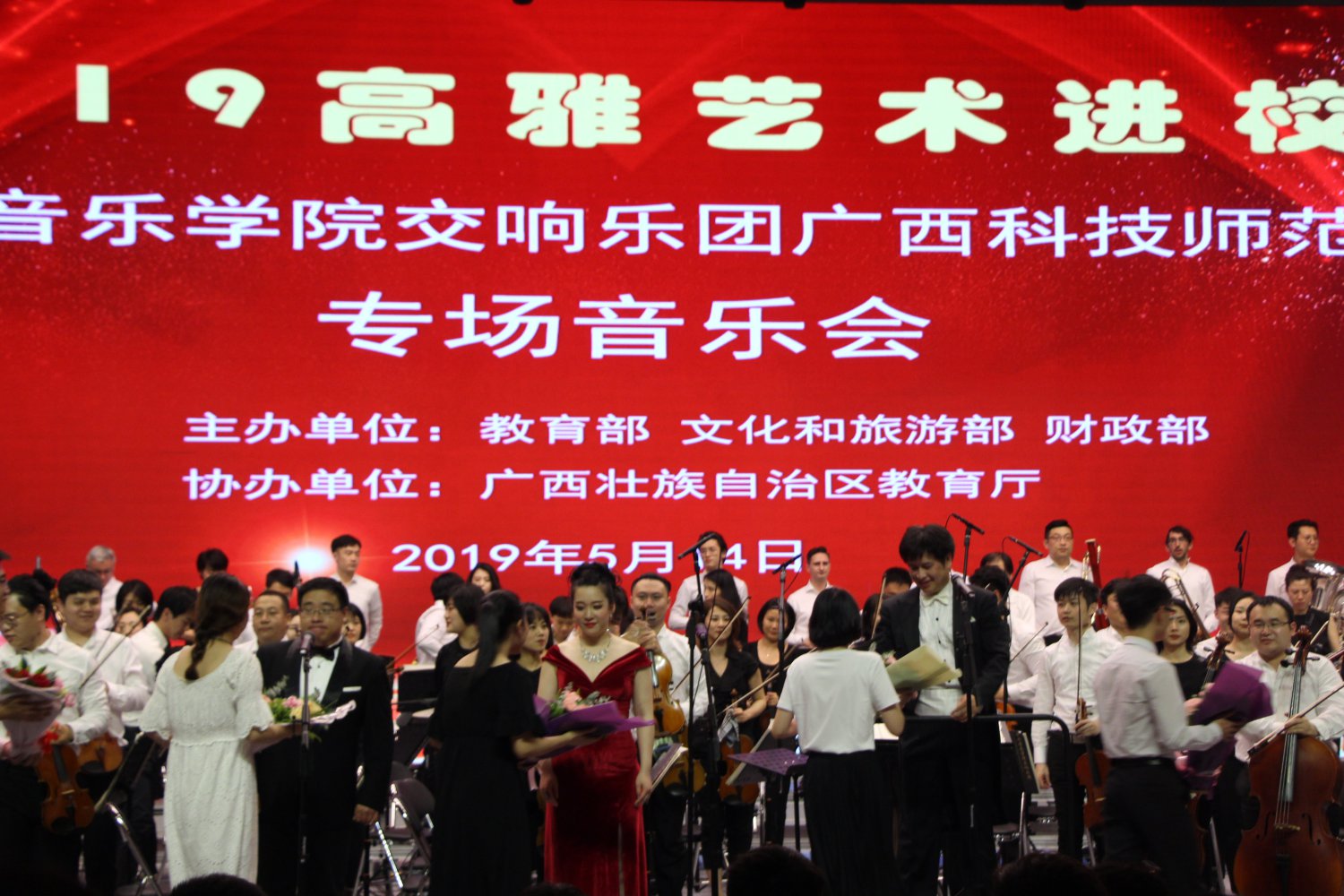 为深入贯彻落实党中央、国务院提出的“进一步推进高雅文化进校园活动,丰富校园文化生活,提高学生艺术修养”要求。5月14日晚,高雅艺术进校园广西巡演正式拉开帷幕,开云kaiyun官方网站交响乐团走进广西科技师范学院,举办专场音乐会,为广大师生带来了一场视听盛宴。