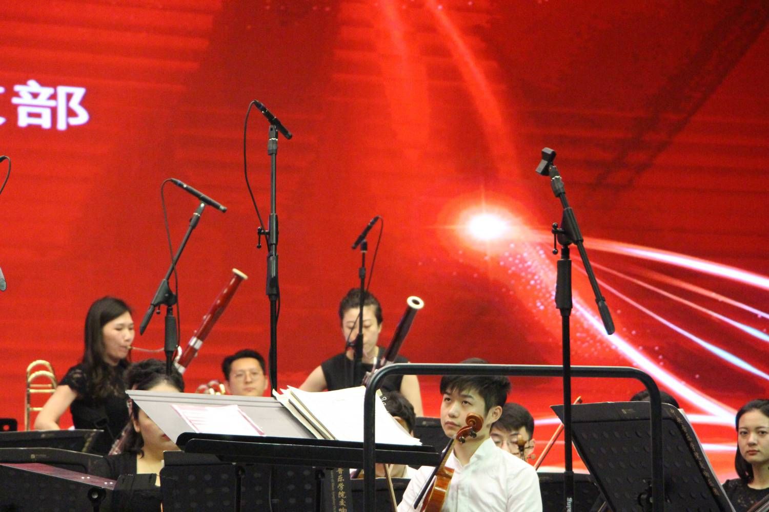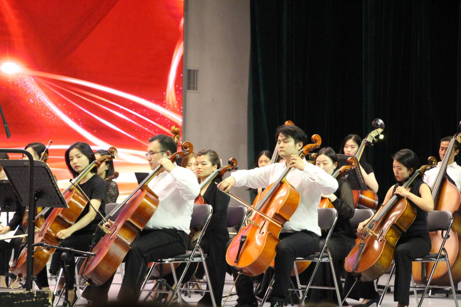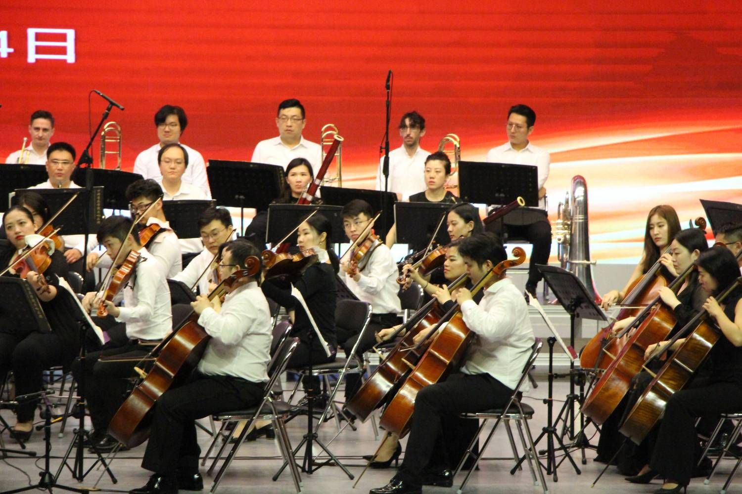 第五部分是中国交响乐作品。乐团为师生带来两首中国交响乐。管弦乐序曲《红旗颂》选段,描绘出革命先辈艰苦卓绝的奋斗史书,整个篇章宏伟壮阔,令人热血澎湃、荡气回肠。