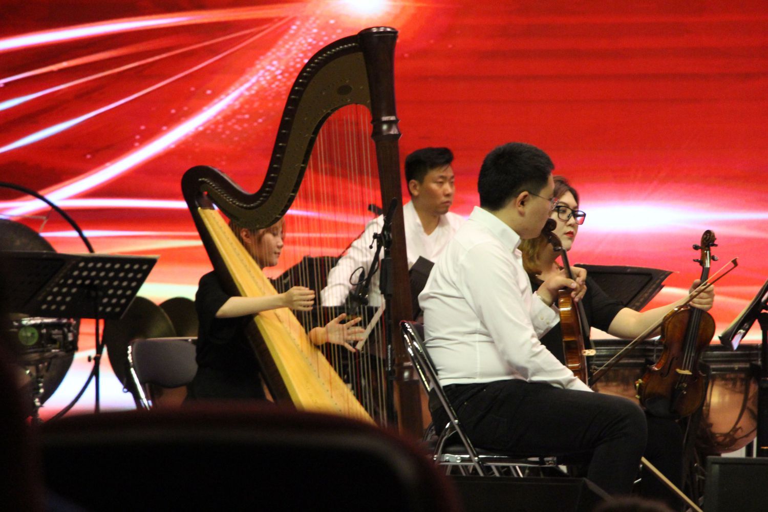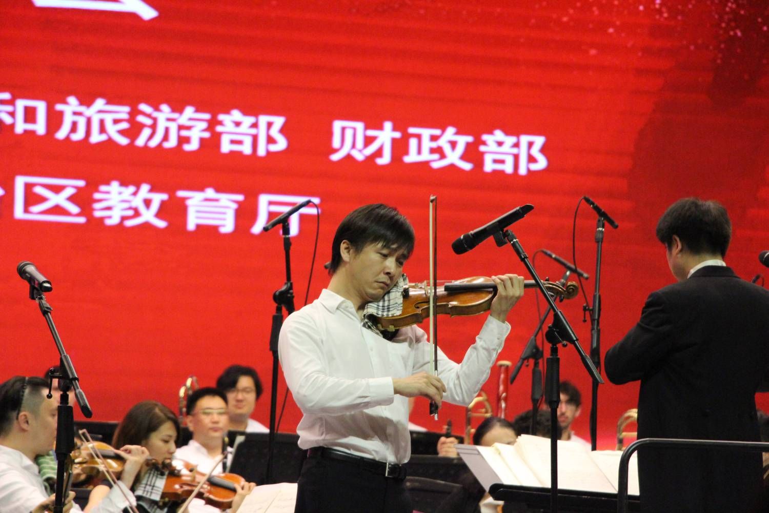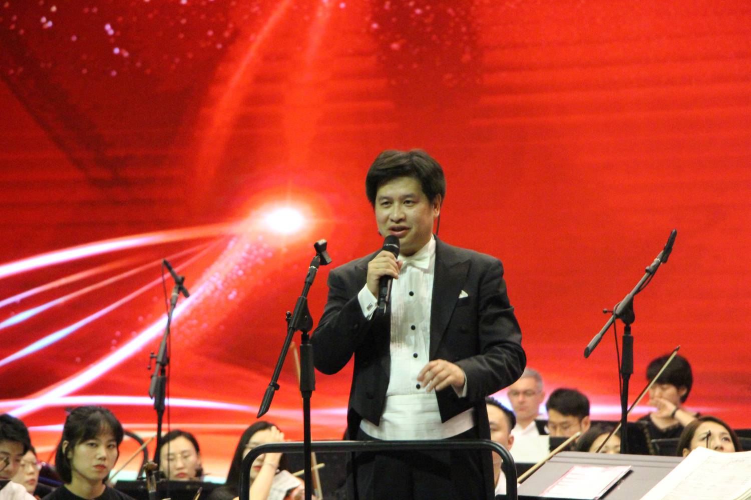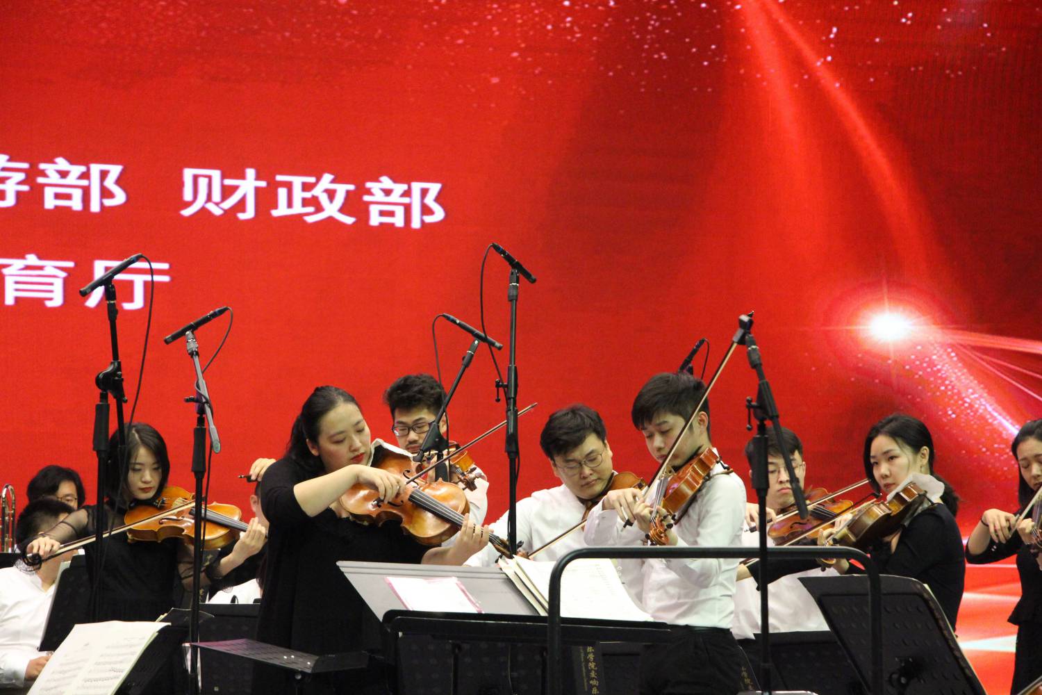 第五部分是中国交响乐作品。乐团为师生带来两首中国交响乐。管弦乐序曲《红旗颂》选段,描绘出革命先辈艰苦卓绝的奋斗史书,整个篇章宏伟壮阔,令人热血澎湃、荡气回肠。