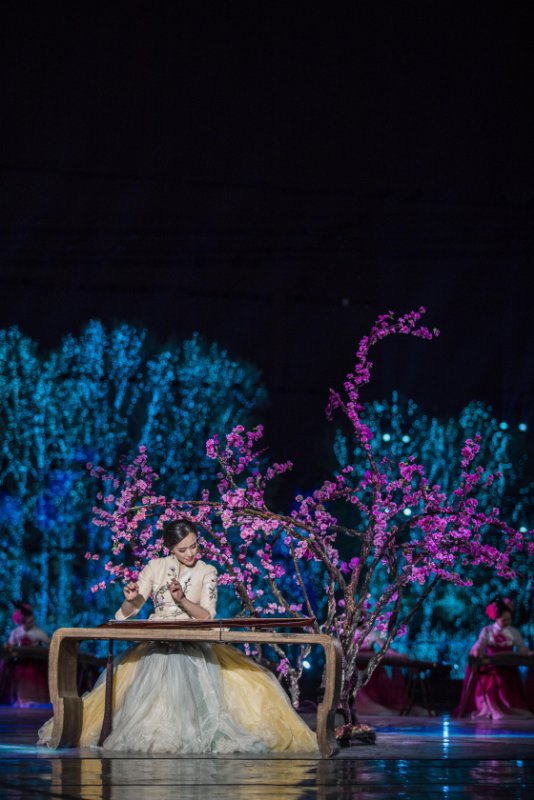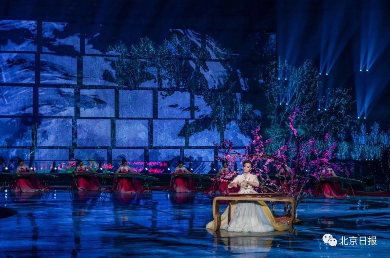 一顷华灯阶如水,桃花树下湖中人。古琴音色沉着大气,与悠长悦耳的箫声、轻灵跳跃的琵琶、恢宏华彩的古筝相和鸣。一时间,万水千山,皆成琴中画卷。海陀山下,妫水河畔,美轮美奂的焰火园林与悠扬的禅声琴韵,勾勒成一幅绝美山水田园图轴。