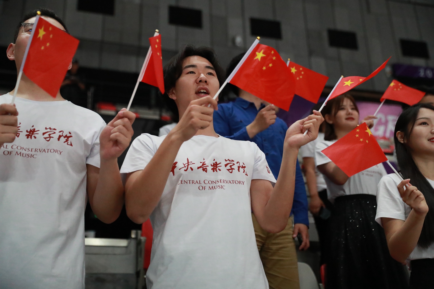 熟悉的旋律再次响起,央音师生再次唱响《我和我的祖国》,用歌声向祖国宣誓:“哪里有央音人,哪里就有五星红旗!”