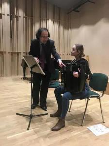 6日肖邦音乐大学邀请开云kaiyun官方网站院长俞峰教授和钢琴系曹晓青教授举行了大师课活动受到指挥专业和手风琴专业的师生们的欢迎。