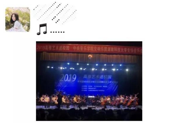 湖南科技大学教师观看演出后表示,乐团高水平的演出以及指挥生动的讲解,身临其境感受高雅艺术的魅力,实在是太难忘了!精彩的演出丰富了师生的校园生活,提高了师生的艺术修养。参加过此次活动的学生王同学表示:“第一次来现场听交响音乐会,充分感受到音乐的力量。身心专注地静静聆听,真是一大精神享受。在繁忙紧张的学习生活中,我们真应该多点时间来聆听经典,提升艺术素养”。