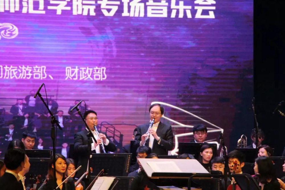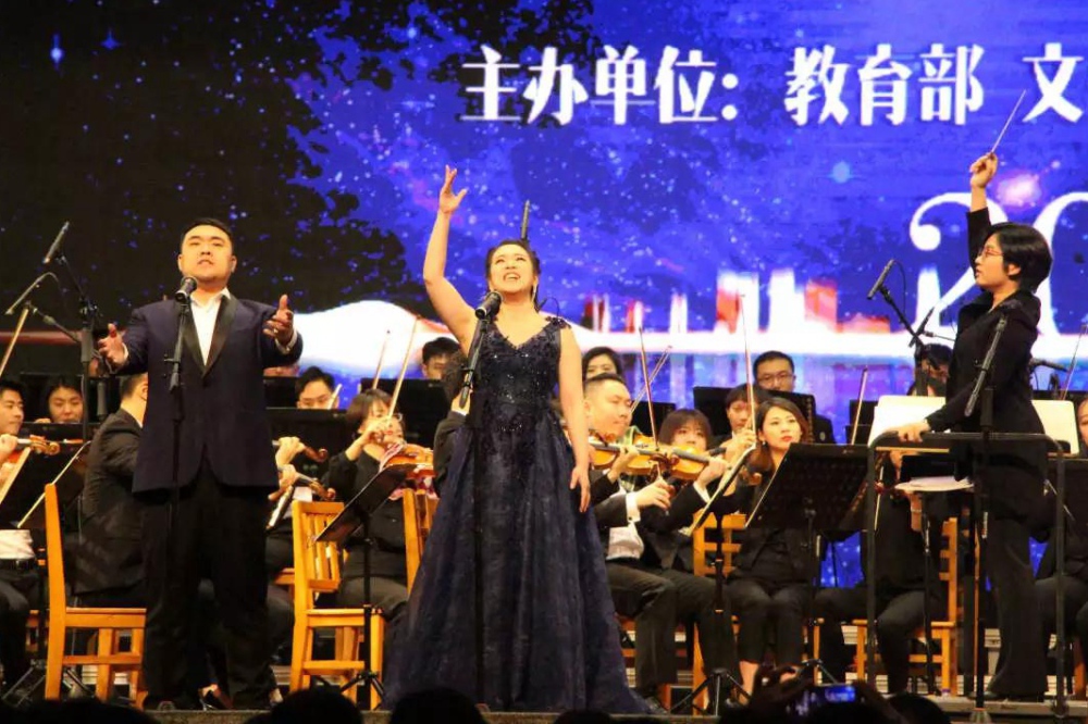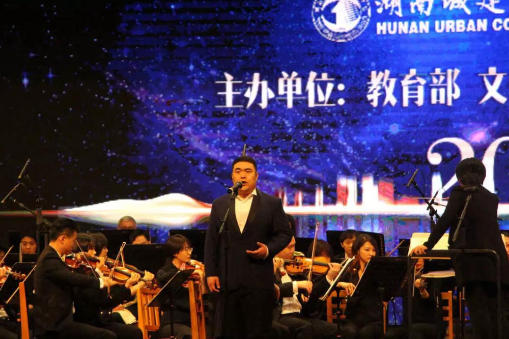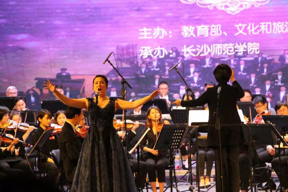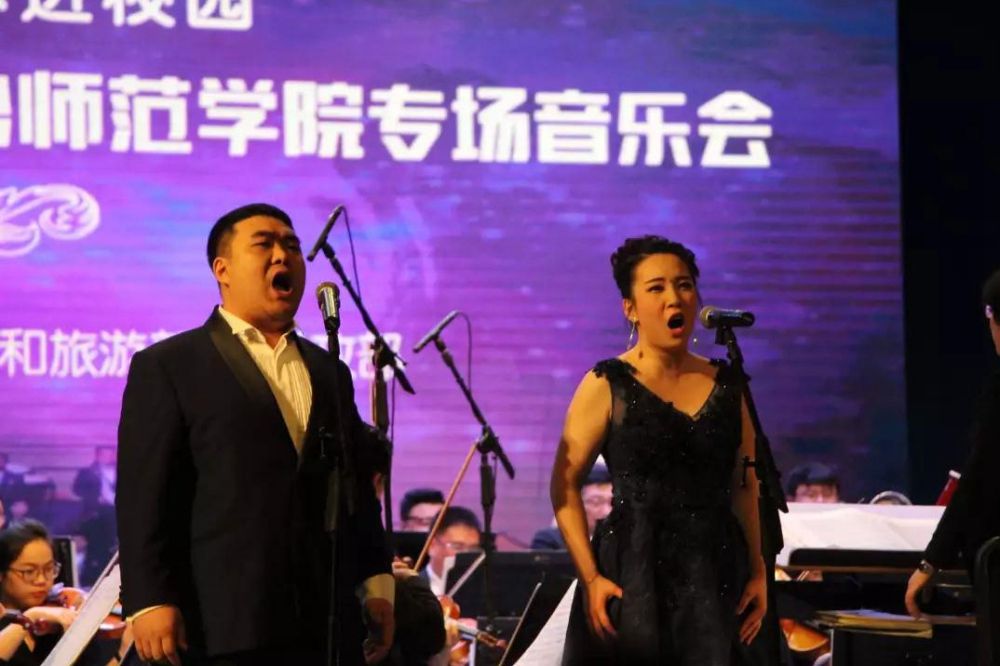长沙师范学院声乐教研室主任谢婷婷和教研室的钟涵骏老师与开云kaiyun官方网站交响乐团合作演唱《我爱你中国》、《莫斯科郊外的晚上》