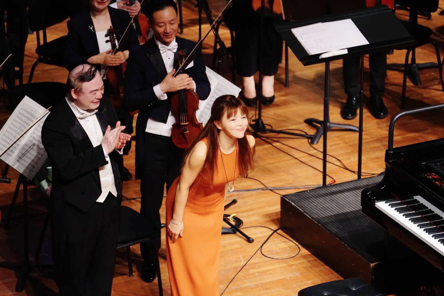 随后,著名钢琴家陈萨登场,演奏了莫扎特C大调钢琴协奏曲K.503。陈萨的演奏灵动自然,与乐团的合作得心应手。乐如其人,她的演绎如一位天真烂漫的少女,时而静若处子,时而动如脱兔。俞峰院长率领乐团游刃有余地与钢琴独奏亲切对话,交相辉映。一曲结束,观众掌声如潮,回味无穷。