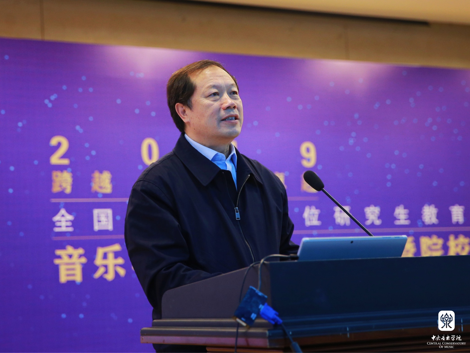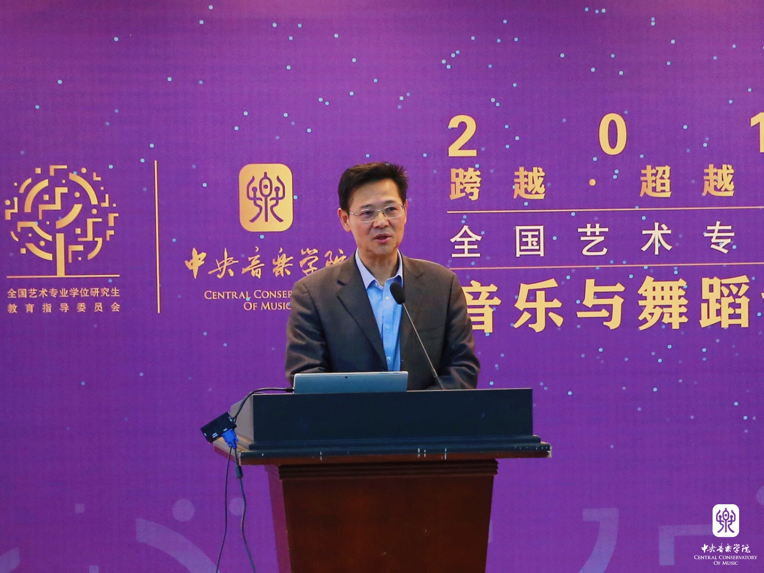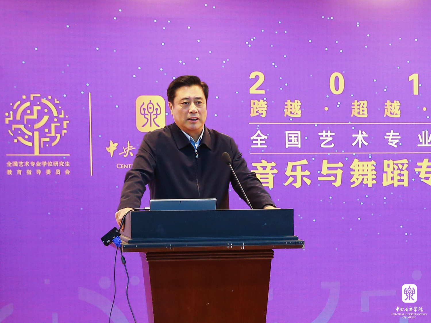 之后,董伟主任在开年忙碌的工作中到会做了重要指导,对“音乐与舞蹈领域”培养工作给予了热切的关心和大力的支持。董伟主任的讲话站在国家利益、民族、文化和政治的高度认识研究生教育的职责。首先,他提出目前艺术硕士专业学位教育“成绩不小、问题不少”,还存在“有数量、缺质量”的主要问题,值得深思、重视和完善。第二,他对艺术专业学位教育提出的希望和要求,他说国家专业学位教育起始于1991年,艺术硕士起始2005年,转眼已到15年的办学历程。经过探索实践,我们必须将“促发展”转向“提升质量”的重点上,在质量上下真功夫,在特色上出成果,在成效上见实绩。第三,我们要切实遵循国家提出的专业学位培养要以“立德树人、服务需求、提升质量、追求卓越”为主线的要求,努力从建设的初级阶段向体系化、成熟化和质量化的更高阶段提升与转变。第四,研究生教育有许多标准,最根本的是“立德树人”,院校要贯彻“三全育人”,将思想政治教育、职业道德教育贯穿教育的全过程。第五,国家政策越来越重视艺术的繁荣与发展,我们要尊重艺术个性和艺术教育的特殊性和规律性,更好服务社会发展对艺术人才的需求。