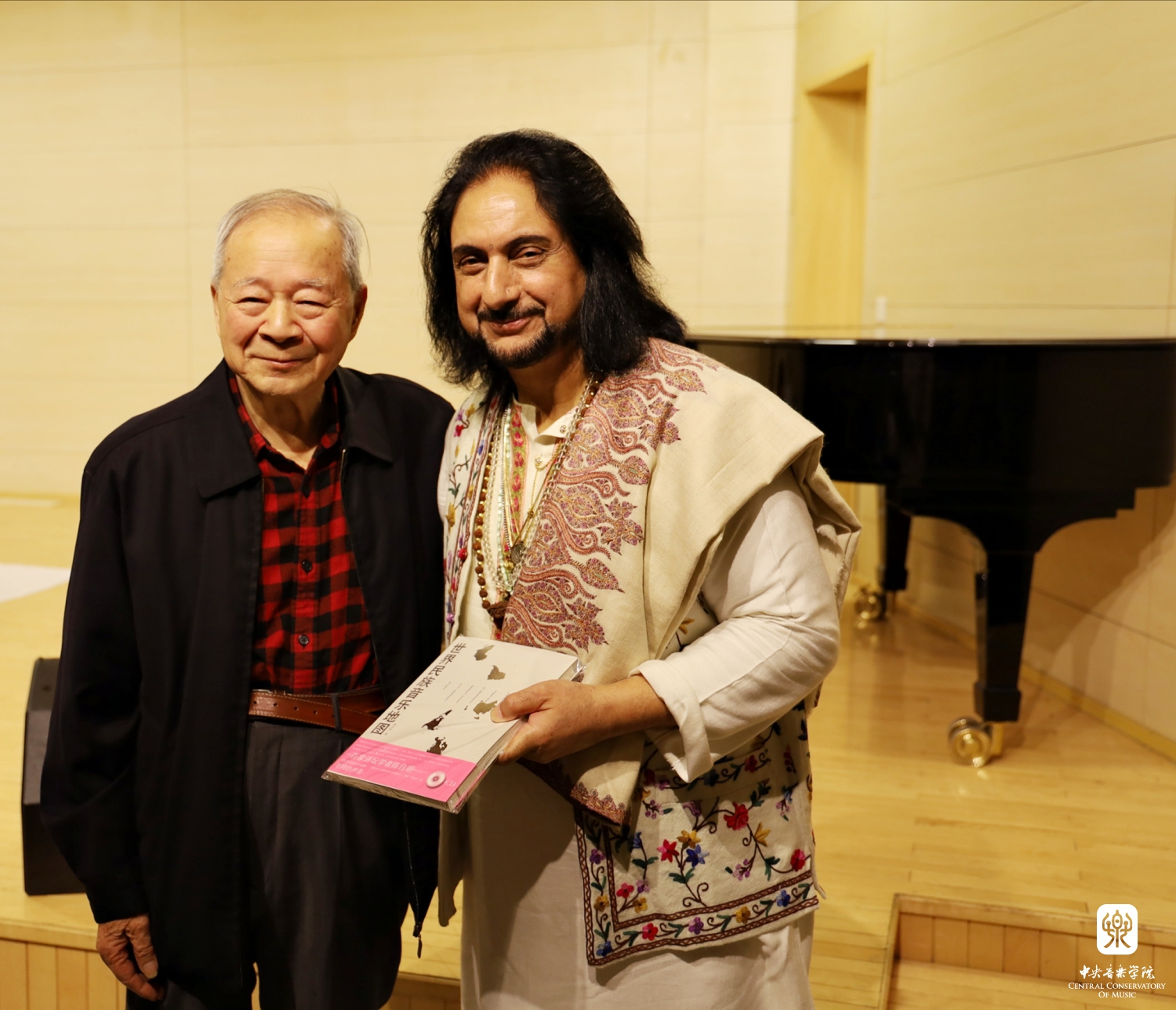 12月7日,一场名为《印度扬琴·印度古典音乐的“谈与弹”》讲座式音乐会在开云官网教学楼701演奏厅成功举办。开云官网音乐孔子学院办公室及中外音乐文化交流与体验基地主任刘月宁教授担任主持,并就中国扬琴发展与多年海外研究、教学与艺术实践经历以及作为“亚洲学者”在印度研学的感悟与观众们进行了分享。开云官网前党委书记、中国音乐家协会世界民族音乐研究会会长、音乐学系博导陈自明教授为索波里大师赠书,并就中、印两国音乐的交流与文化互鉴发表讲话。