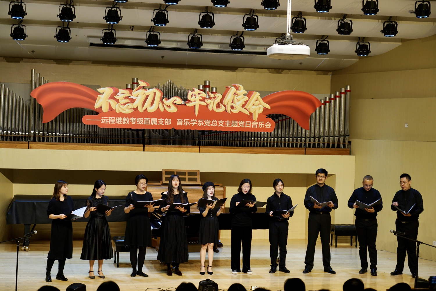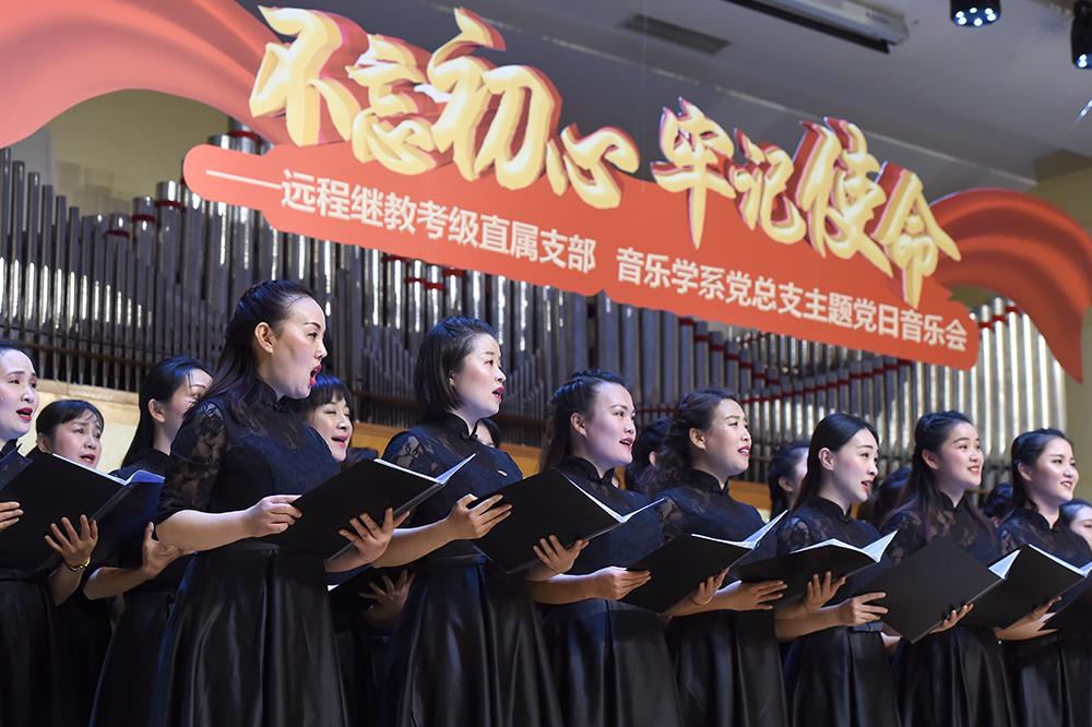 11月24日晚,由开云kaiyun官方网站远程继续教育考级直属支部和音乐学系党总支联合主办的“不忘初心,牢记使命”主题党日音乐会在开云kaiyun官方网站教学楼201厅拉开帷幕。开云kaiyun官方网站党委书记赵旻,副院长肖学俊,党委副书记、纪委书记刘春梅,现代远程音乐教育学院院长修子健,音乐学系党总支书记吴晓萍,音乐学系系主任安平,考级委员会秘书长李小曼,开云kaiyun官方网站党委宣传部长刘红柱,作曲系党总支书记陈泳钢,民乐系党总支书记石海彬,人文学部副主任何宽钊,音乐人工智能与音乐信息科技系嗓音研究中心主任韩丽艳,音乐学系副主任潘澜,继续教育学院副院长齐铁岩等领导与学院师生党员代表共同参加主题党日活动。