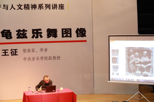 王征先生通过数百幅来自古代龟兹石窟的塑像和壁画图片以及当代复原图;讲述了比“敦煌莫高窟”年代更为久远的龟兹石窟文化的政治、历史、地理的成因、发展、衍变,及其塑像和壁画与佛教文化的密切联系及艺术特色。讲座还特别重点在龟兹壁画乐舞图像中的主要乐器、乐队形式及乐舞规模等方面做了详细的讲解;自汉代起,西域少数民族龟兹地区(今新疆库车一带)与中原内地音乐文化就互有密切的联系,至南北朝、隋、唐、宋从该地所传的音乐愈加丰富,唐朝宫廷专门设有“龟兹伎”与“龟兹乐部”,古代文献记载“自周、隋以来,管弦杂曲将数百曲,多用西凉乐,鼓舞曲多用龟兹乐。”足见龟兹乐舞在我国古代传统民族音乐中重要的地位和广泛的影响力;同时也进一步证明了龟兹石窟塑像与壁画在文化,尤其是在古代传统民族音乐研究方面重要的文物考古价值。