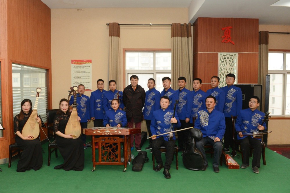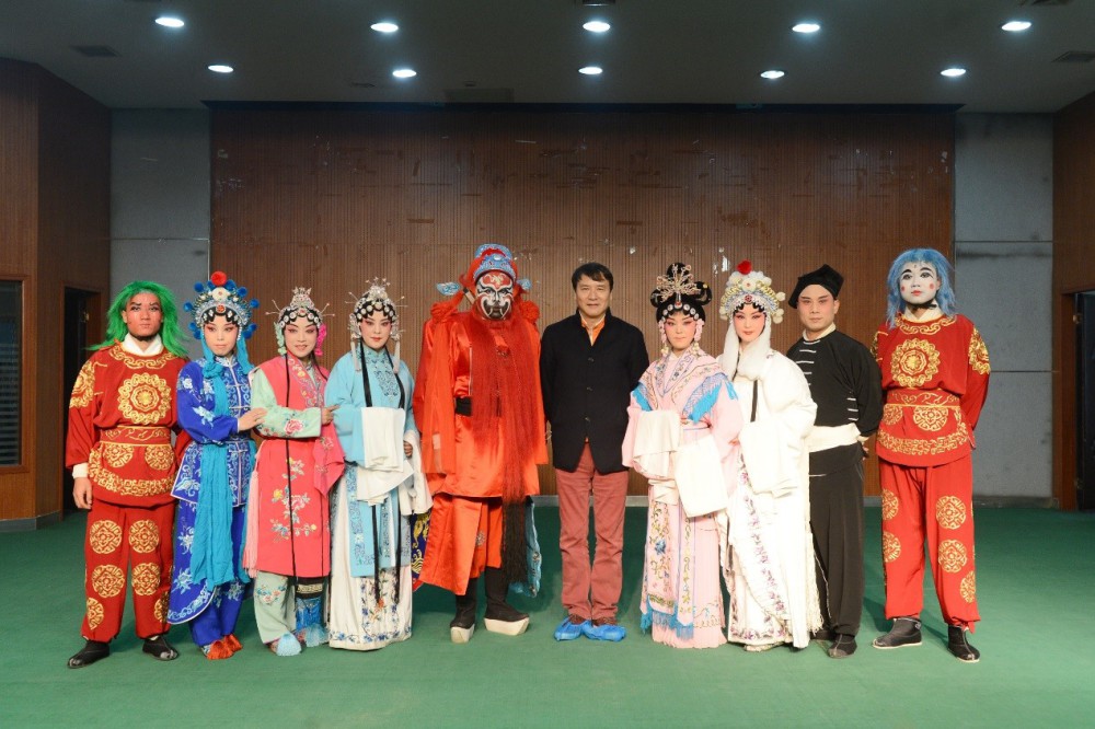 观摩阿宫腔民间戏曲表演后与当地艺术家合影