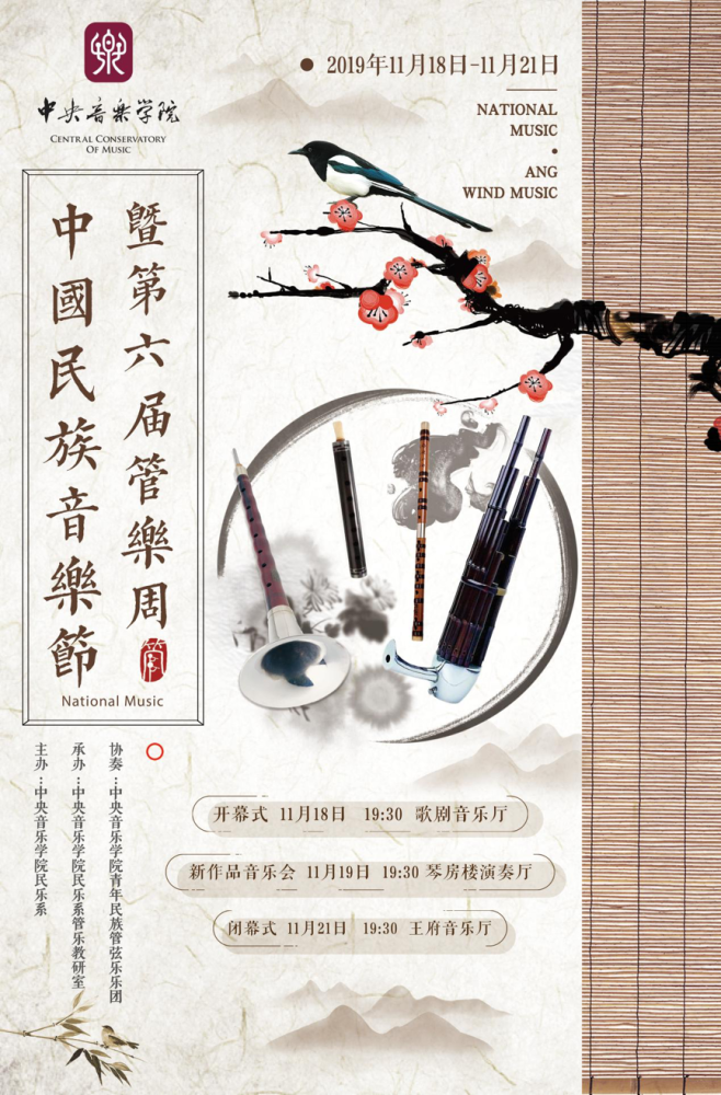 2019年11月18日19:30,开云kaiyun官方网站中国民族音乐节暨第六届民族管乐周的开幕式音乐会在开云kaiyun官方网站歌剧音乐厅成功举办。本场音乐会由民乐系管乐教研室教师杨守成、戴亚、石海彬、袁非凡、王磊、韩雷、张维维、李乐、冯天石、范临风、侯长青联袂出演,各作品的时间跨度从20世纪五十年代直至现今,向听众展示了传统民间器乐作品的风貌和当代民族器乐创作的风采。