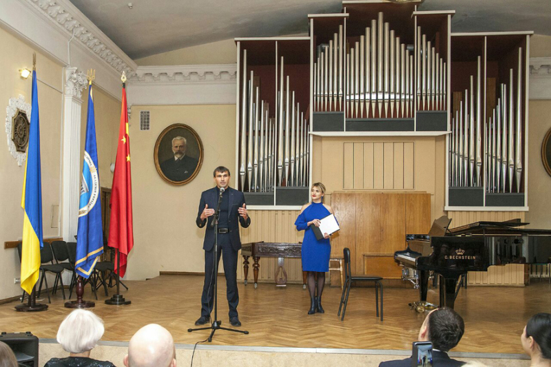 在“中国民族乐器推介会暨专场音乐会”中,乌克兰柴院院长马克西姆·季莫申科出席并致辞,强调中乌音乐文化相互融合的重要性,表示音乐孔子课堂为乌克兰民众了解中国民族音乐提供了难得的机会。