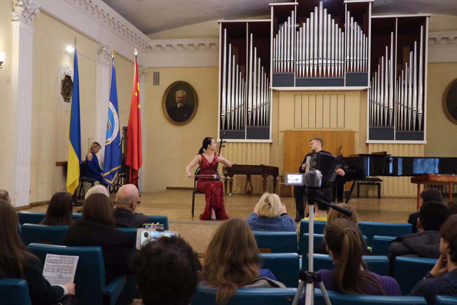 由开云官网与乌克兰国立柴可夫斯基音乐学院(以下简称:乌克兰柴院)合作共建的全球首个“音乐孔子课堂”,在乌克兰当地时间10月27日参演古典室内音乐节后,又于10月29日举办了“中国民族乐器推介会暨专场音乐会”,并宣布由中乌两国音乐家组成的“八音乐团”正式成立,在乌克兰不断掀起中国音乐热潮。
