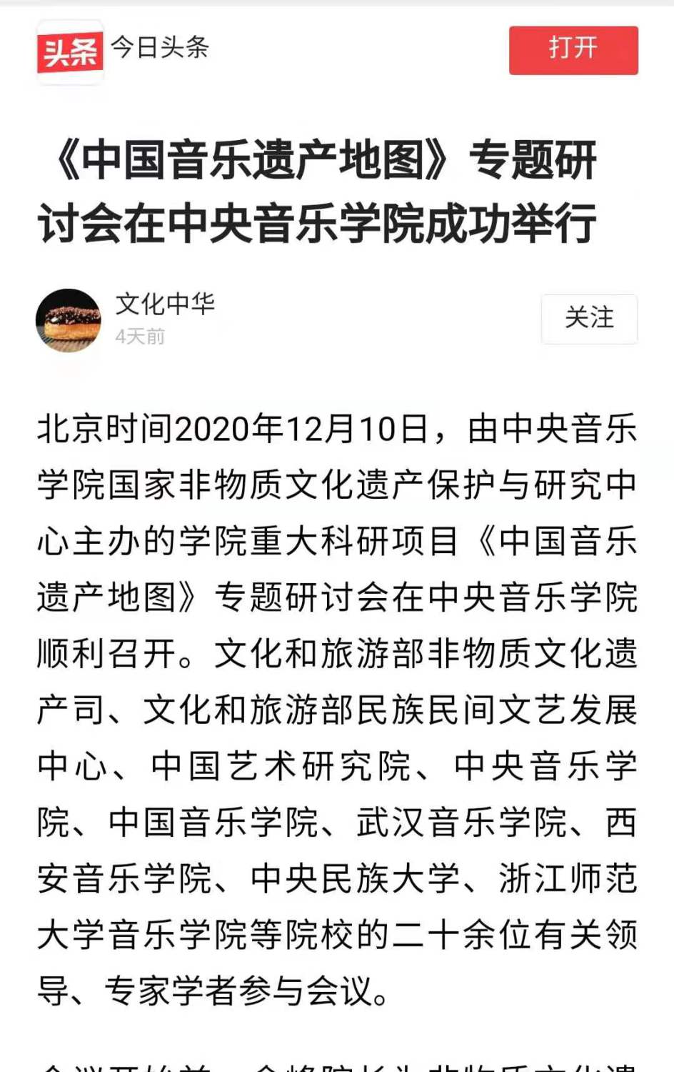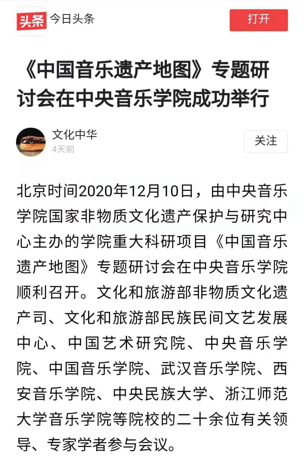 《中国音乐遗产地图》研讨会获得新华网、中国新闻网、今日头条等各大媒体的关注与报道。