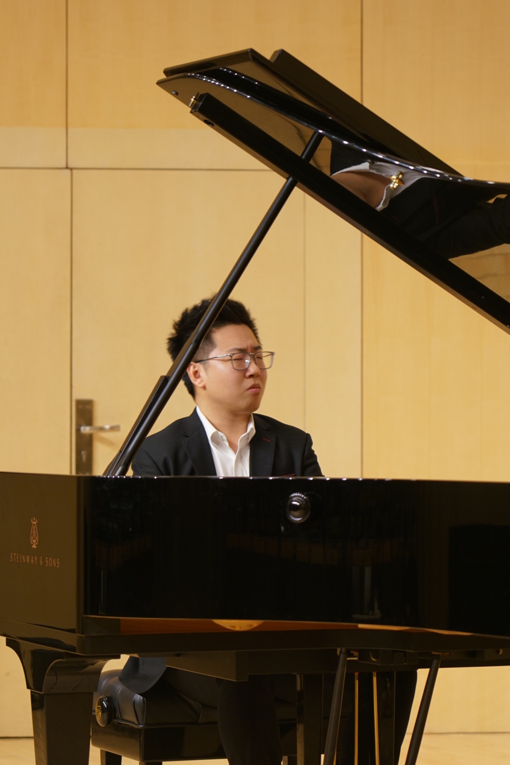 本场演出的最后一首作品,是贝多芬于1809年创作的《钢琴幻想曲》(Op.77),由钢琴系研一学生齐一多同学进行演奏。从巴洛克时代开始,幻想曲一直是一个极为重要的键盘音乐体裁,因为它可以极大化地展现一个人的即兴演奏能力。此首作品是贝多芬根据弦乐四重奏第二小提琴声部开头部分抽取的音乐片段移植到钢琴上进行即兴演奏的作品,整个曲目的即兴演奏都集中在中音区。而贝多芬则在此基础上,创造出了最好的旋律与和声,采用了最为辉煌的演奏会风格,最终作成了这首钢琴幻想曲。