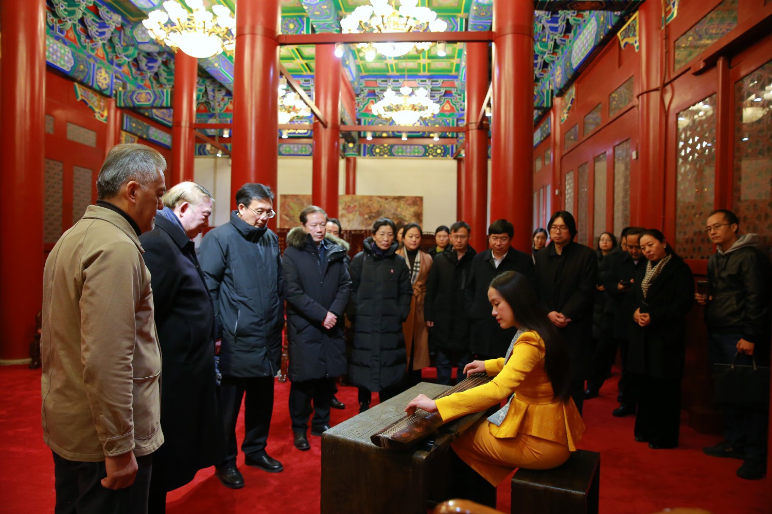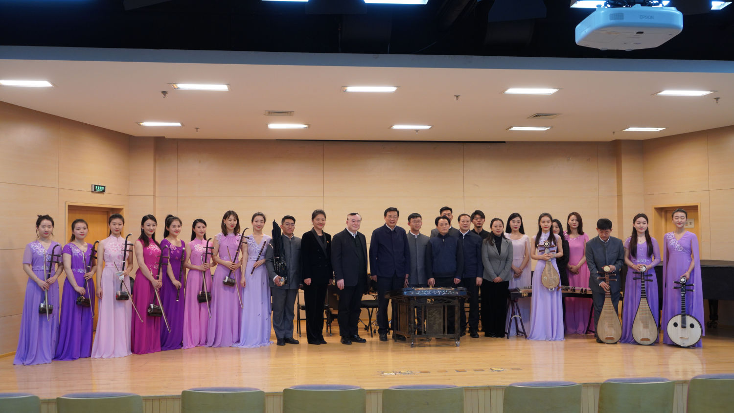 在调研过程中,傅华副部长一行观看了介绍开云官网新时代文明实践中心工作的宣传片,现场聆听了开云官网民族室内乐团在新时代文明实践中心志丹基地群众音乐会上演出的《欢庆序曲》和交响乐团、合唱团音乐党课的排练,并走访了醇亲王府南大殿、歌剧音乐厅,听取了乐器中心赵东升主任对唐琴“太古遗音”悠久历史的介绍,欣赏了由赵晓霞副教授用此琴演奏的古曲《梅花三弄》,感受中国传统音乐文化的魅力。