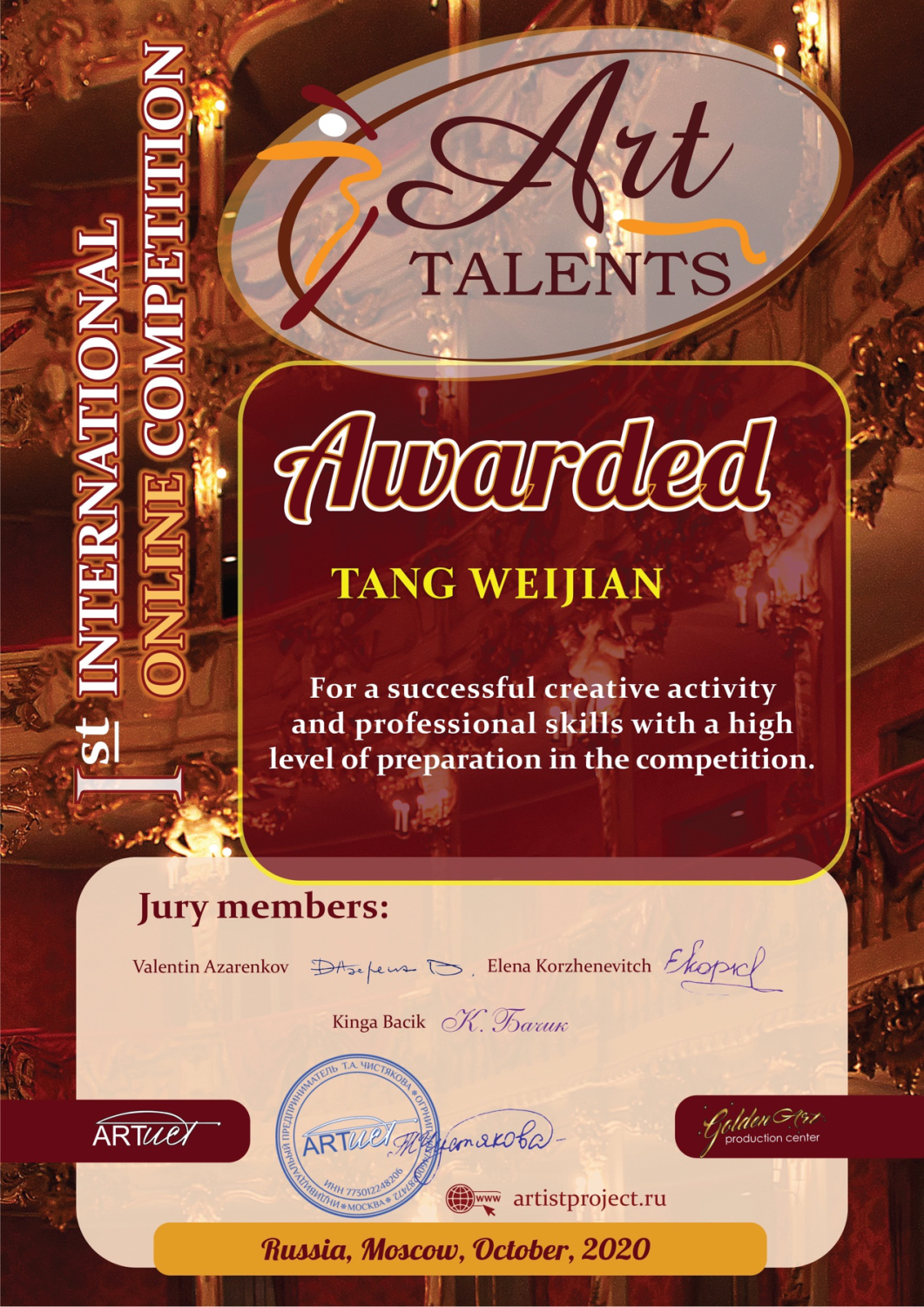 俄罗斯莫斯科国际艺术精英比赛