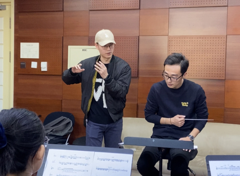 ‘Harmony in Diversity’在排练,曲作者亲自指挥。