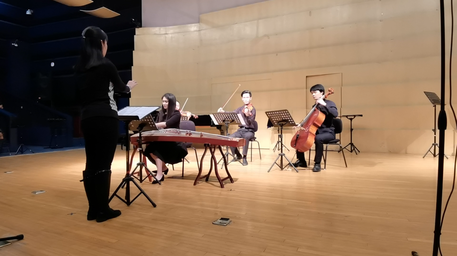 在令人耳目一新的两首打击乐重奏作品之后登场的《弦乐四重奏》(作曲:李景元),其核心音高素材取自耳熟能详的民歌《三十里铺》,曲作者在作曲技术上试图将弦乐器的每一根弦均当作独立的乐器使用,从而通过有限的乐器编制体现更加丰富的层次。