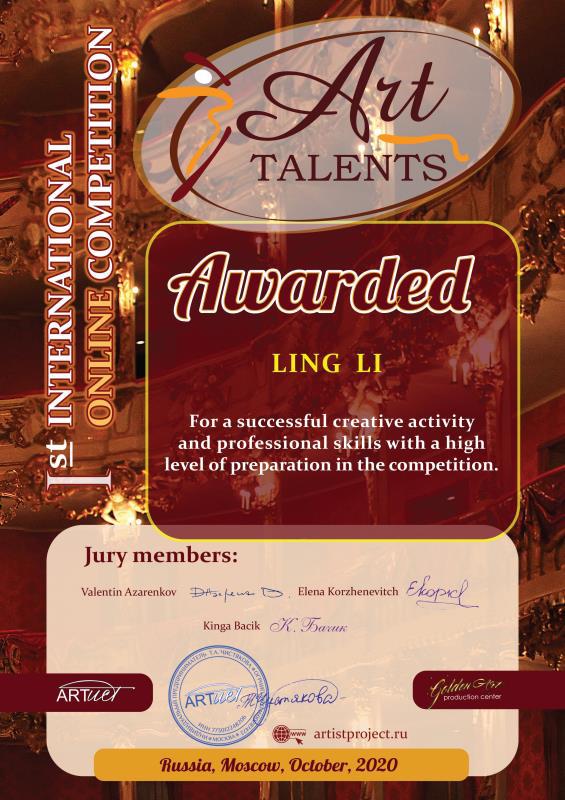 本次比赛由俄罗斯莫斯科艺术家音乐会经纪公司和俄罗斯莫斯科金色艺术制作公司主办。采用网络形式,是包含钢琴、弦乐、管乐、民族乐器、声乐、流行乐、合唱、爵士乐、舞蹈、作曲等项目的综合性网络比赛,是面向世界各国正在学习音乐的学生及专业青少年音乐家的音乐盛会!年轻的音乐家们经过精心准备把最满意的音乐作品送来参赛,经过激烈角逐,许多优秀选手脱颖而出!这次比赛获奖者分别来自欧、亚、美多个国家,包括俄罗斯、瑞士、中国、奥地利、美国、哈萨克斯坦、马其顿、德国、白俄罗斯、阿塞拜疆、土耳其、加拿大、吉尔吉斯斯坦、意大利、波兰、西班牙等!本次大赛评委均来自俄罗斯莫斯科柴可夫斯基音乐学院、国立歌剧院和俄罗斯功勋艺术家等,阵容强大,保证了大赛的高艺术水准!