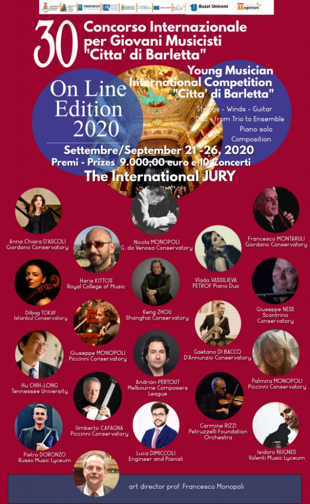 意大利巴列塔之城国际音乐家比赛历史悠久,评审团阵容强大。(Concorso Città di Barlett)此次第30届比赛,来自世界各地的注册人数超过320人,取得了巨大成功。