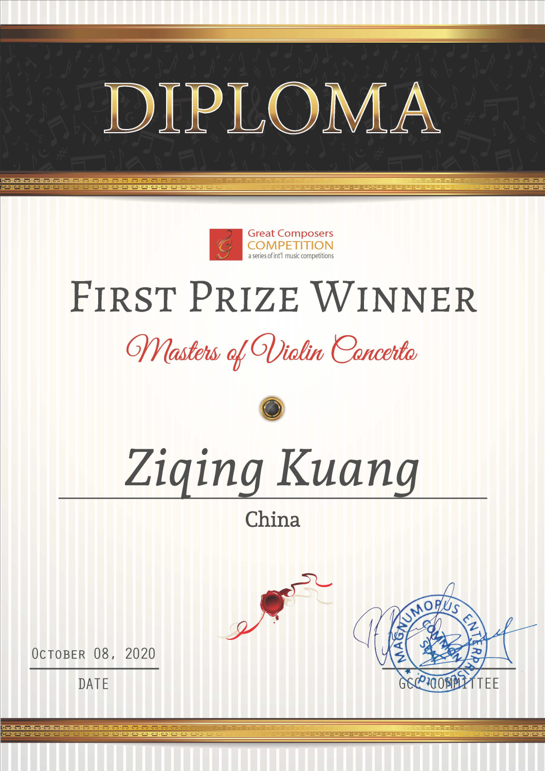 附小学生大提琴专业匡艺豪荣获英国伟大音乐家比赛-国际音乐比赛系列赛-协奏曲大师赛一等奖