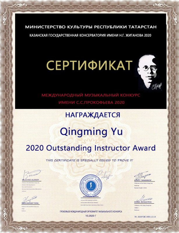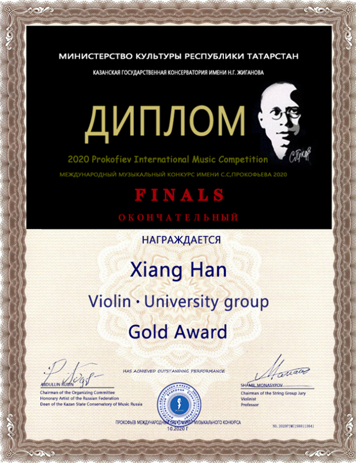 2020年获得普罗科菲耶夫国际音乐节专业少年组银奖(金奖空缺)