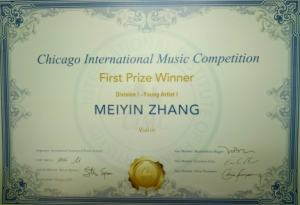 2020年8月 第三届美国芝加哥国际音乐大赛小提琴专业少儿组一等奖。