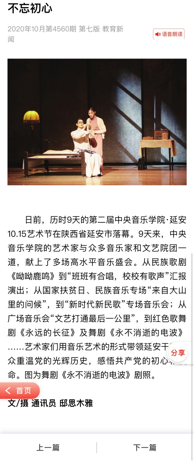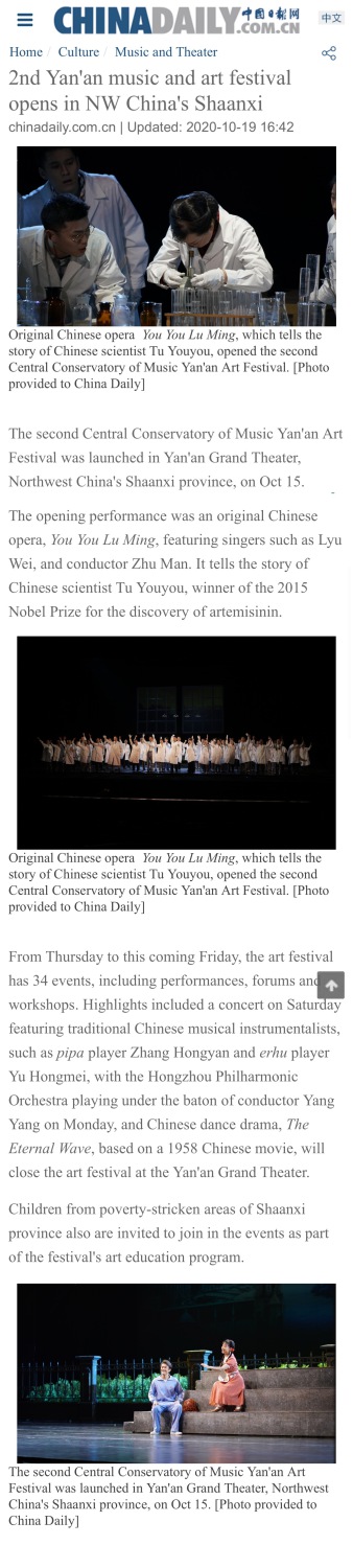 本届艺术节精彩纷呈,从荣获国家“五个一工程”奖的开幕大戏——民族歌剧《呦呦鹿鸣》到开云kaiyun官方网站音乐教育学院与延安市中小学师生汇报演出“班班有合唱,校校有歌声”;从国家扶贫日民族音乐专场“来自大山里的问候”到开云kaiyun官方网站创作中心作品专场音乐会“新时代·新民歌”;从开云kaiyun官方网站新时代文明实践中心群众广场音乐会“文艺打通最后一公里”到红色歌舞剧《永远的长征》以及上海歌舞团创演舞剧《永不消逝的电波》。40场精彩的活动,用音乐艺术的形式带领延安干部群众重温党的光辉历史,感悟党的初心和使命,也播撒下艺术的种子,让延安市中小学师生受到了音乐教育的熏陶。艺术节既有交响乐、歌剧、舞剧这样的高雅艺术,也有群众性的音乐普及活动;既有高水平的专题讲座、现场教学和学习分享,也有面对面的讲述和心贴心的交流,为延安人民奉献了传承红色基因、弘扬中华传统优秀文化和社会主义先进文化的艺术盛宴,让延安人民受到强烈的艺术感染,进一步坚定了我们的文化自信。同时,本届艺术节主题突出、内容丰富、形式多样、贴近生活,受到了社会各界的广泛关注和强烈好评!