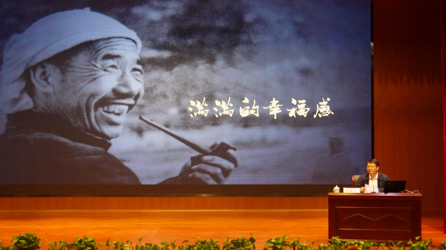 10月22日下午,中共延安市委常委、宣传部部长、延安鲁艺文化园区党工委书记柯昌万同志讲授的《坚定文化自信,努力增强人民群众的幸福感》讲座举行。在长达三小时的讲座中,柯部长从一张“满满的幸福感”陕北老人照片讲起,紧紧围绕“坚定文化自信”,用历史的眼光和发展的视角,用生动活泼的语言,结合鲜活的人物故事娓娓而谈。从哲学思维深度解读了习总书记的“奋斗幸福观”、马克思主义的“劳动幸福观”;探讨了关于幸福的追求和文化解读,深入浅出地阐述了幸福感的深刻内涵、价值取向、现代意义。